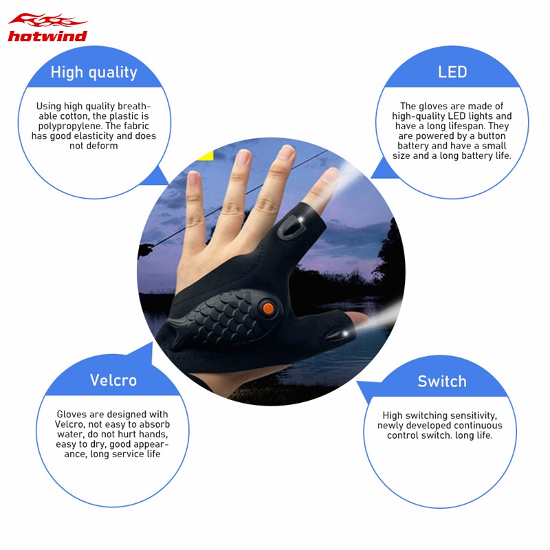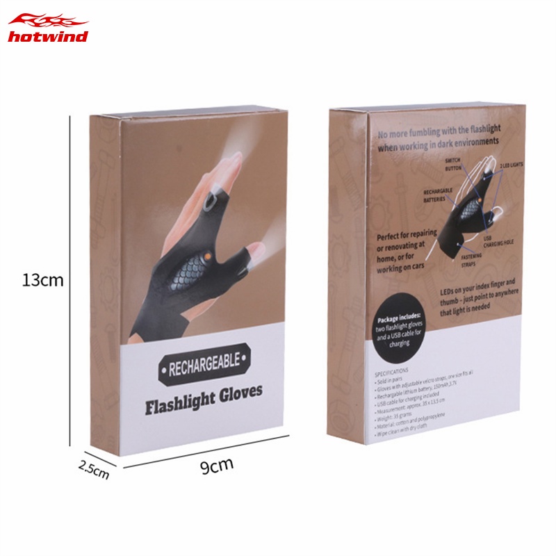 HW Luvas Sem Dedos Com Lanterna Recarregável/Claro LED/Lâmpada De Dedo Para Pesca Noturna/Acampamento/Caminhada