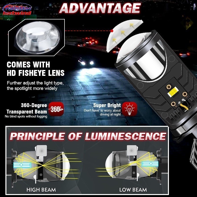Lente FG 1 PC Projetor H4 350000LM 860W Lâmpadas De Teto Para Carros MINI H4 Bi Canbus Turbo Light 12V Lentes 36V