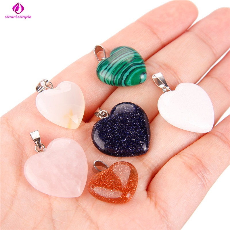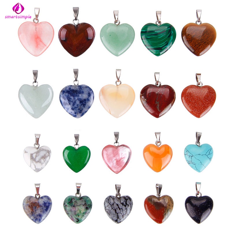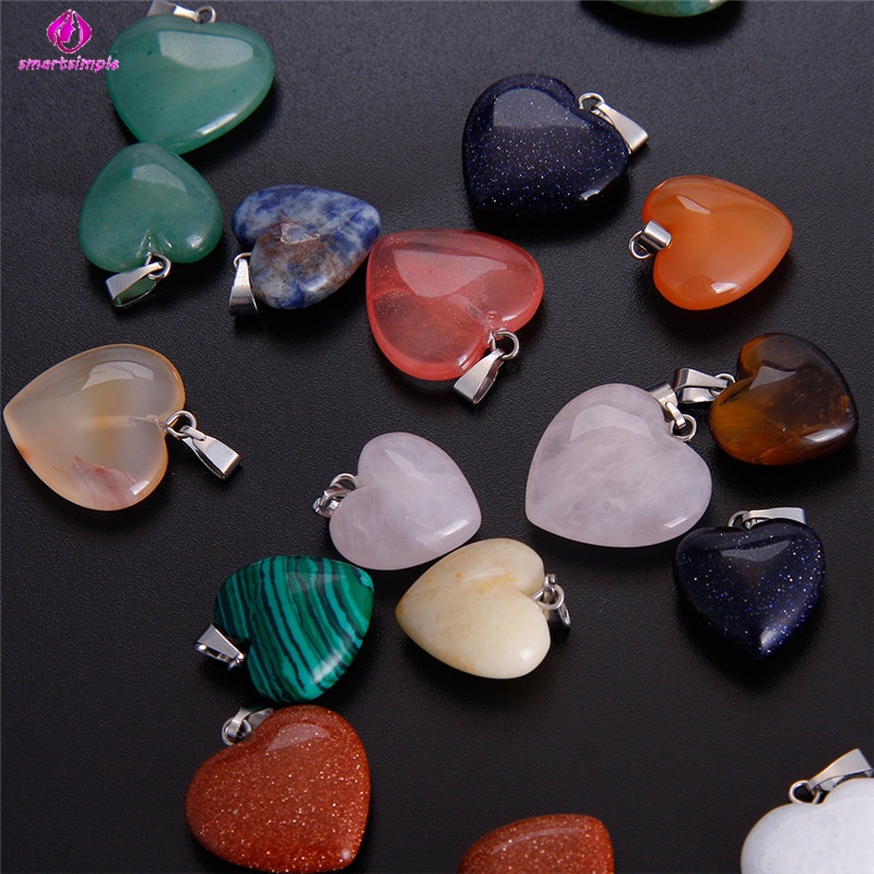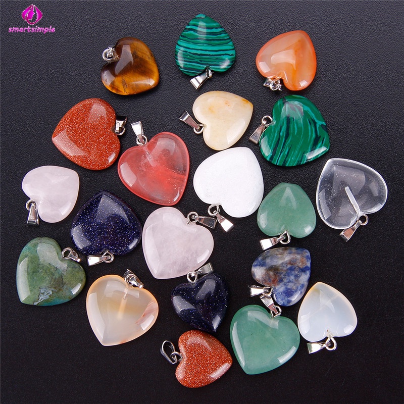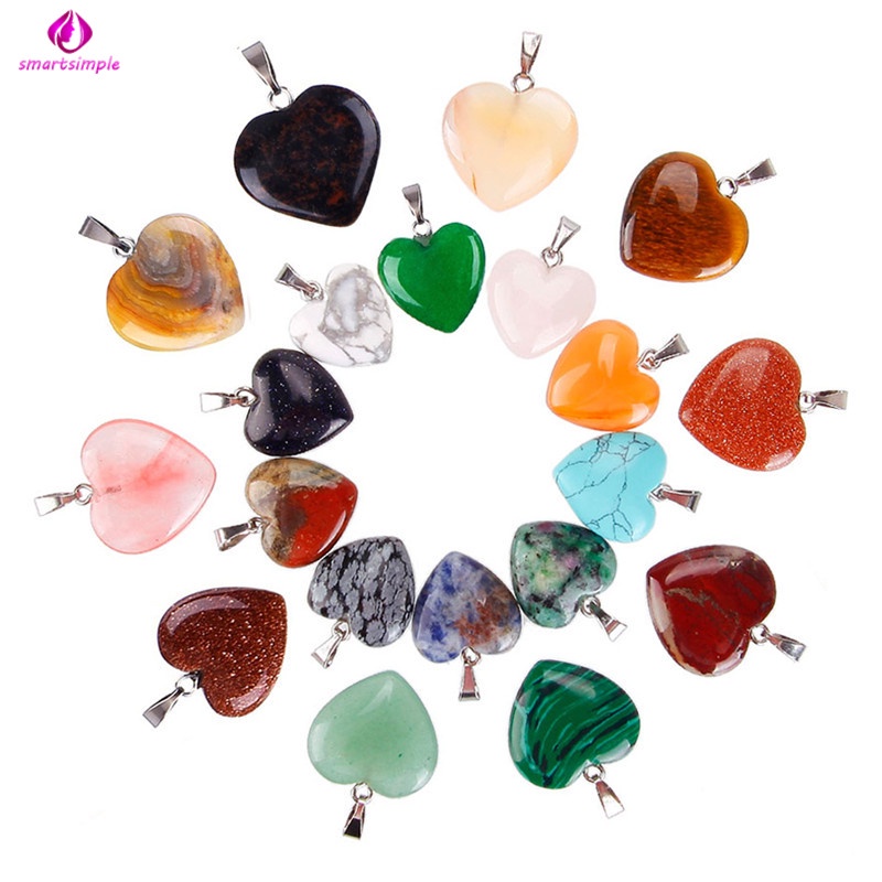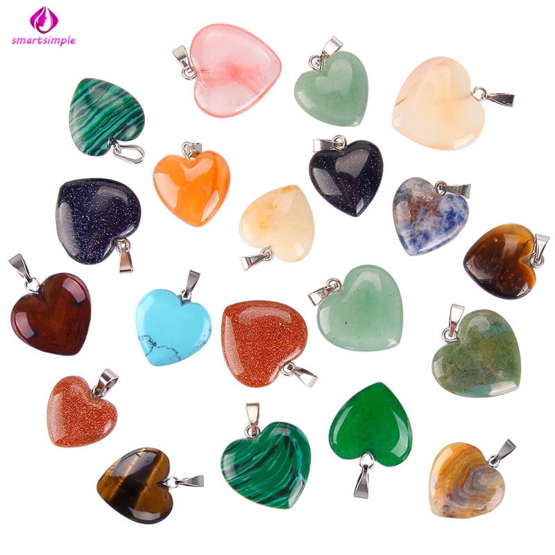 20 Peças Pingentes De Pedra Em Formato De Coração Para Chakra/Contas De Cristal/Faça Você Mesmo
