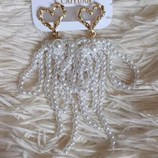 Brincos Com Pérolas Longo Festa Luxo Banhado a Ouro18K Para Eventos Noiva Casamento Feminino Lindo -