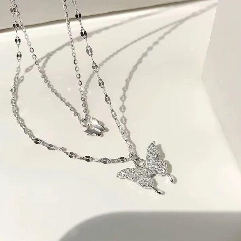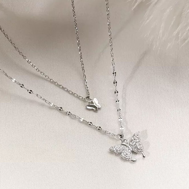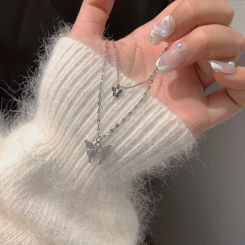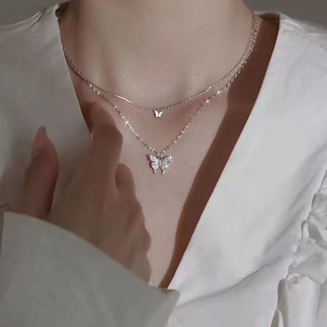 Colar Duas Camadas Tumblr Borboletas Feminino Choker Luxuosa Prateada Retrô Vintage Evento Casamento