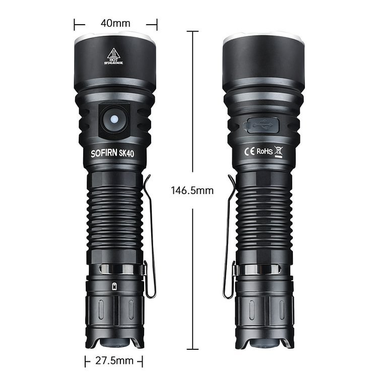 Lanterna Tática SOFIRN SK40 De 3200 Lúmens , EDC Recarregável Com Lançamento Longo De 580 M , Holofote De Interruptor Du