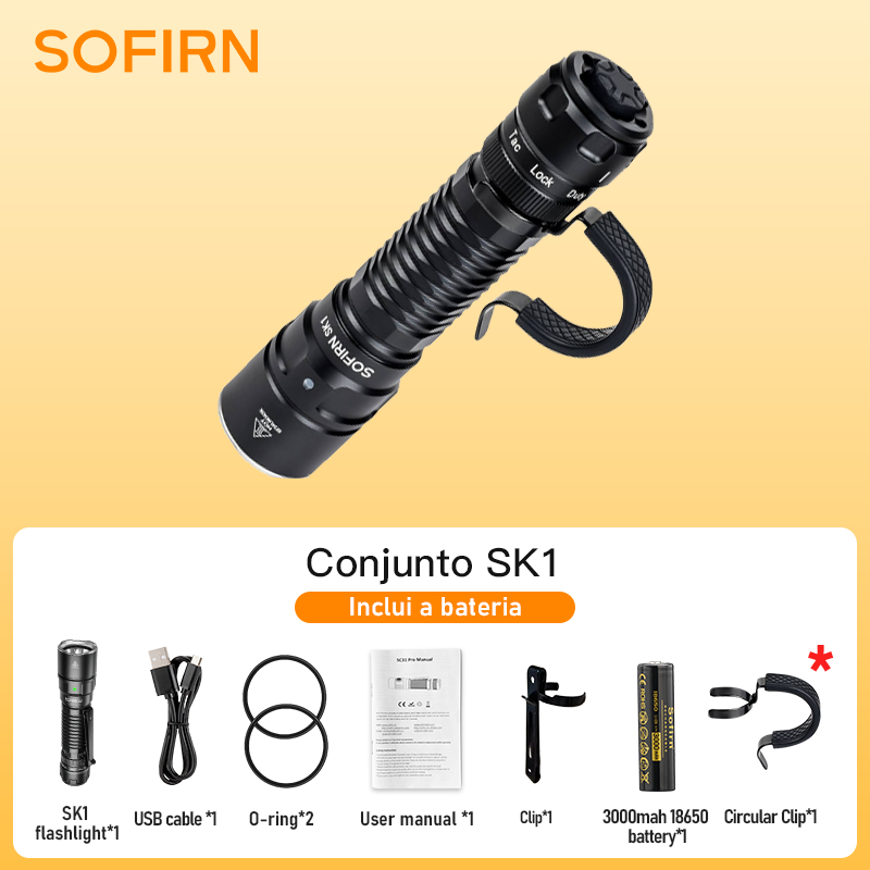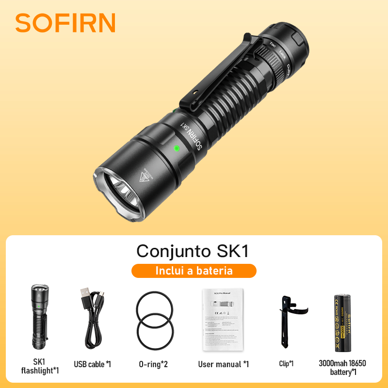 Lanterna Tática Sofirn SK1 , 1300 Lúmens , IP68 À Prova D'água , Longo Alcance , Recarregável , EDC
