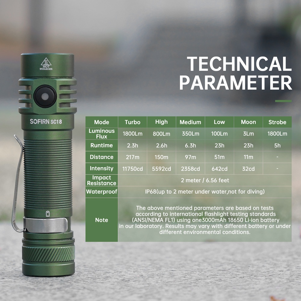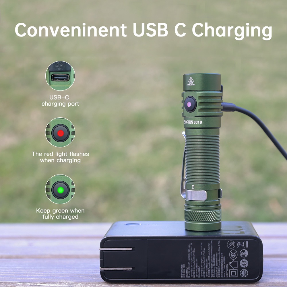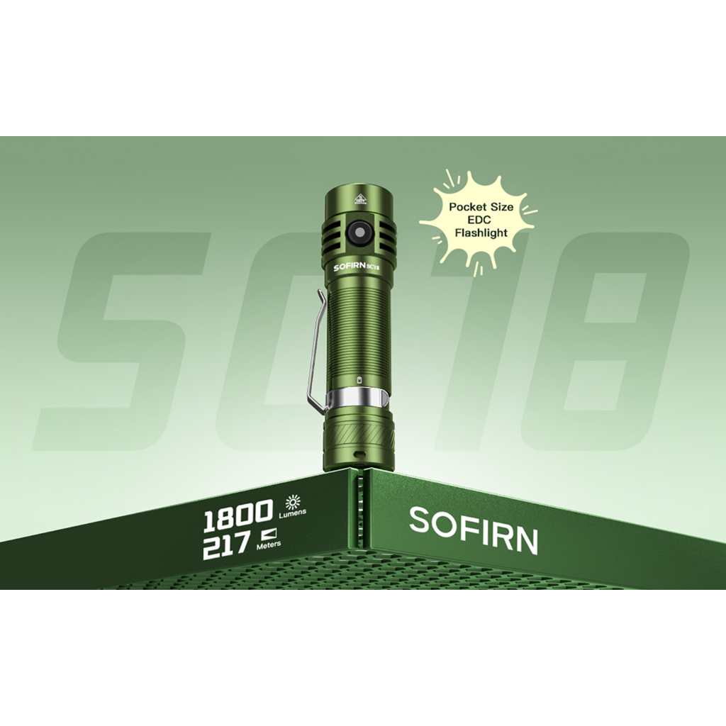 Lanterna Recarregável Sofirn Green SC18 USB Tipo C , Luz Pequena Super Brilhante Para Emergência , LED SST-40 De Alta Po