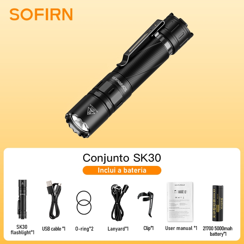 Lanterna Tática Sofirn SK30 3000 Lúmens , Recarregável , Interruptores Duplos , 6 Modos , IP68 , Para Camping , Emergênc