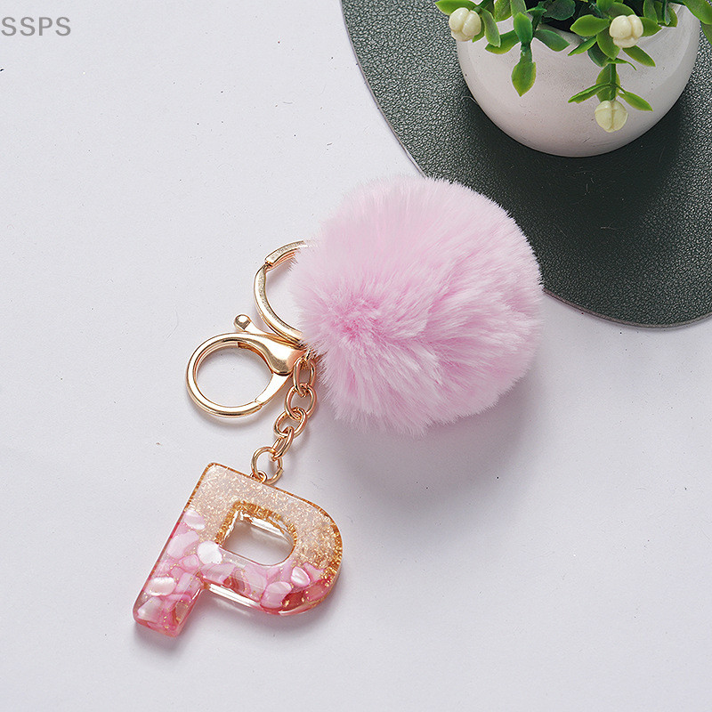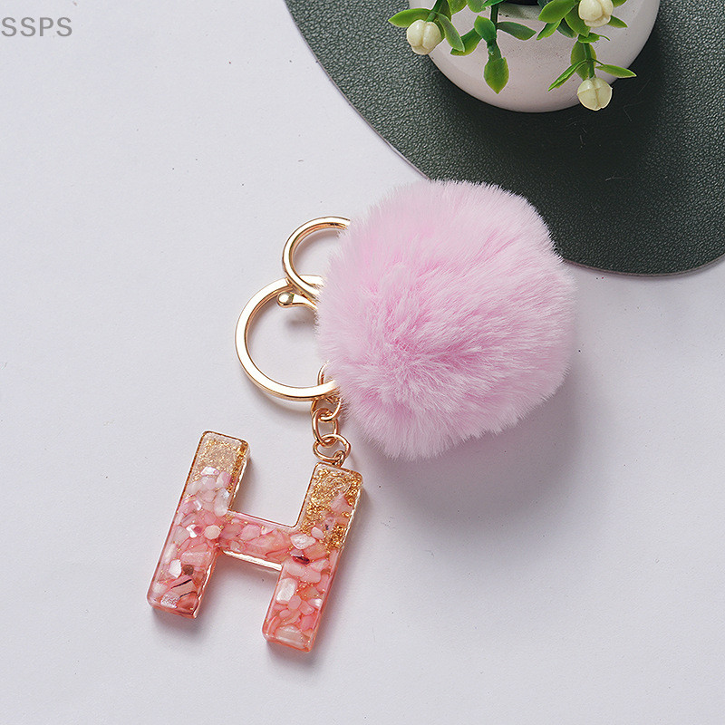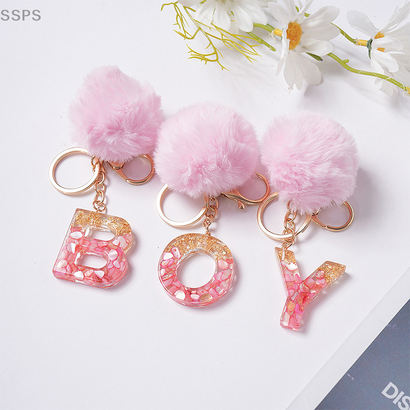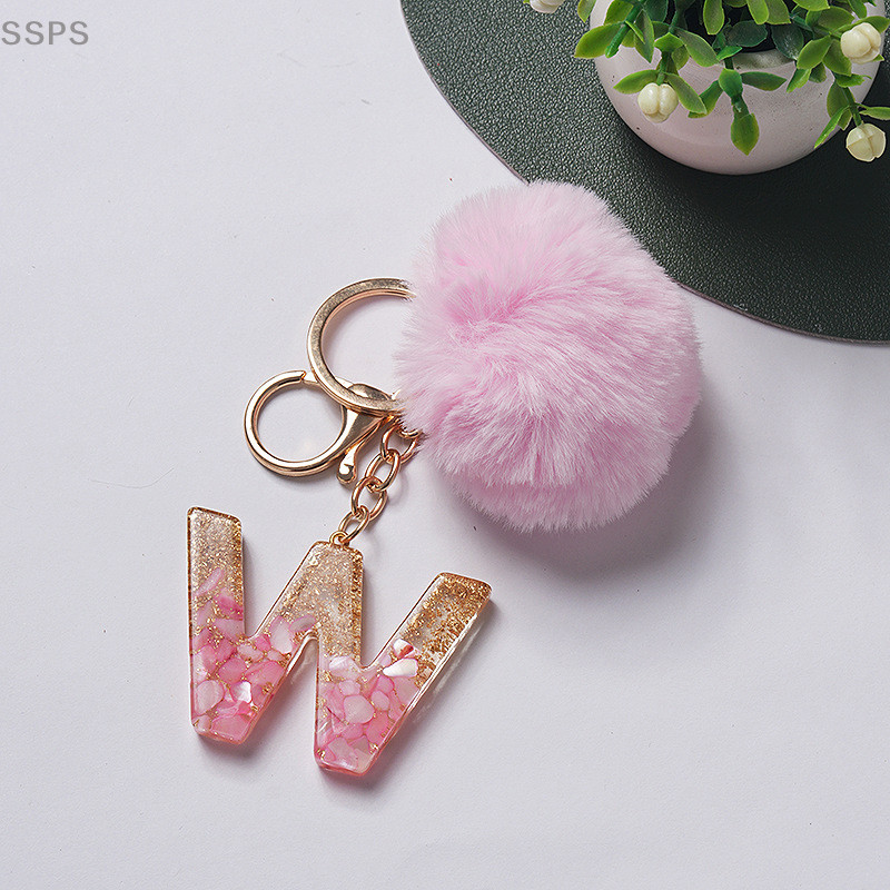 [SSPS] Chaveiro Fofo Rosa Pompom 26 Letras Resina Bolsa Ch Para Mulher Ornamentos Acessórios Presente FAH