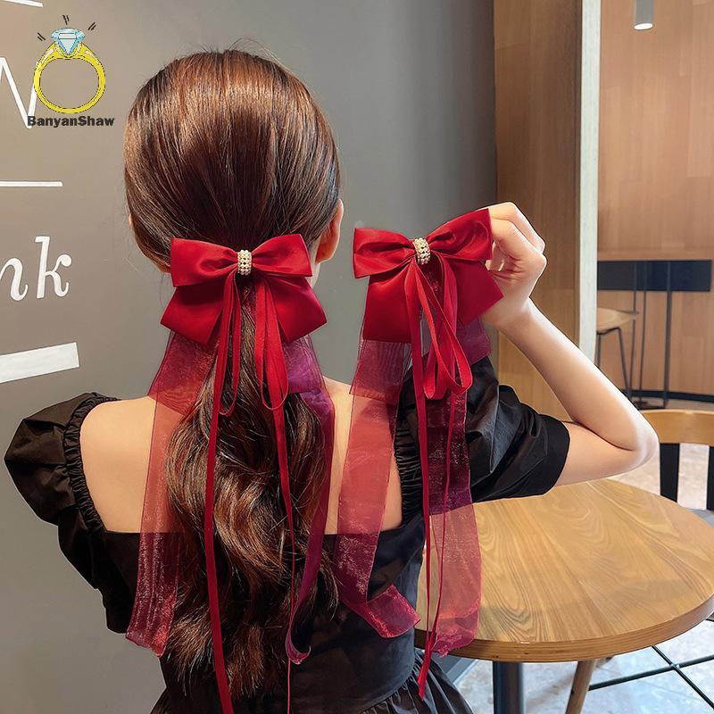 [BANY] Novo Doce Grande Laço Para Mulheres Meninas Lolita Fita Longa Sólida Grampo De Cabelo Bonito Rabo De Cavalo Faixa