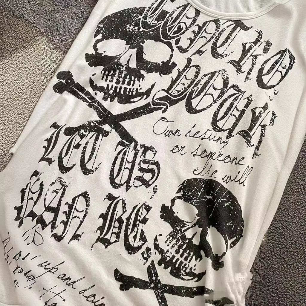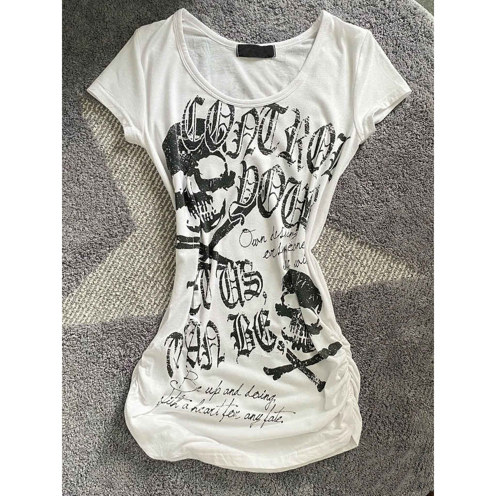 Camiseta Feminina Vintage Estilo Punk Rock High Street Crânio Estampa Manga Curta Top Emagrecedor
