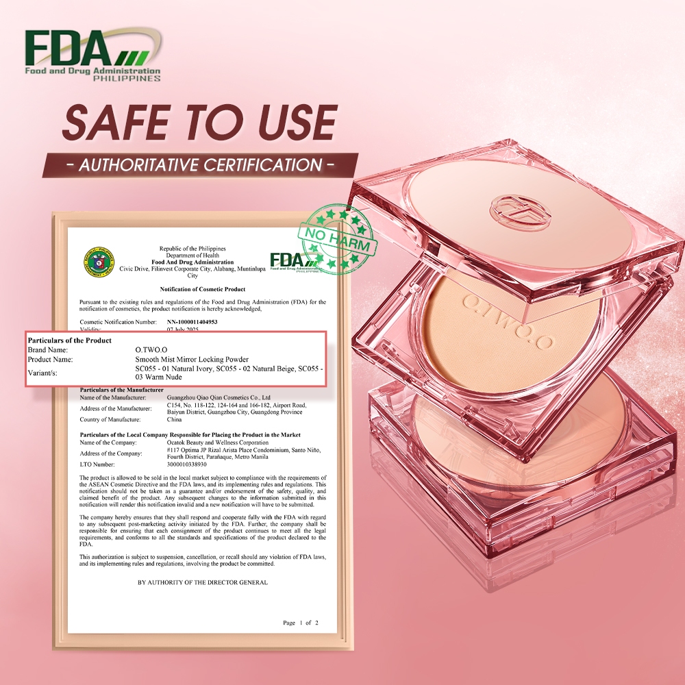 O.TWO.O Pó Facial Controle de Oleosidade Fixação 24H Mate com Puff