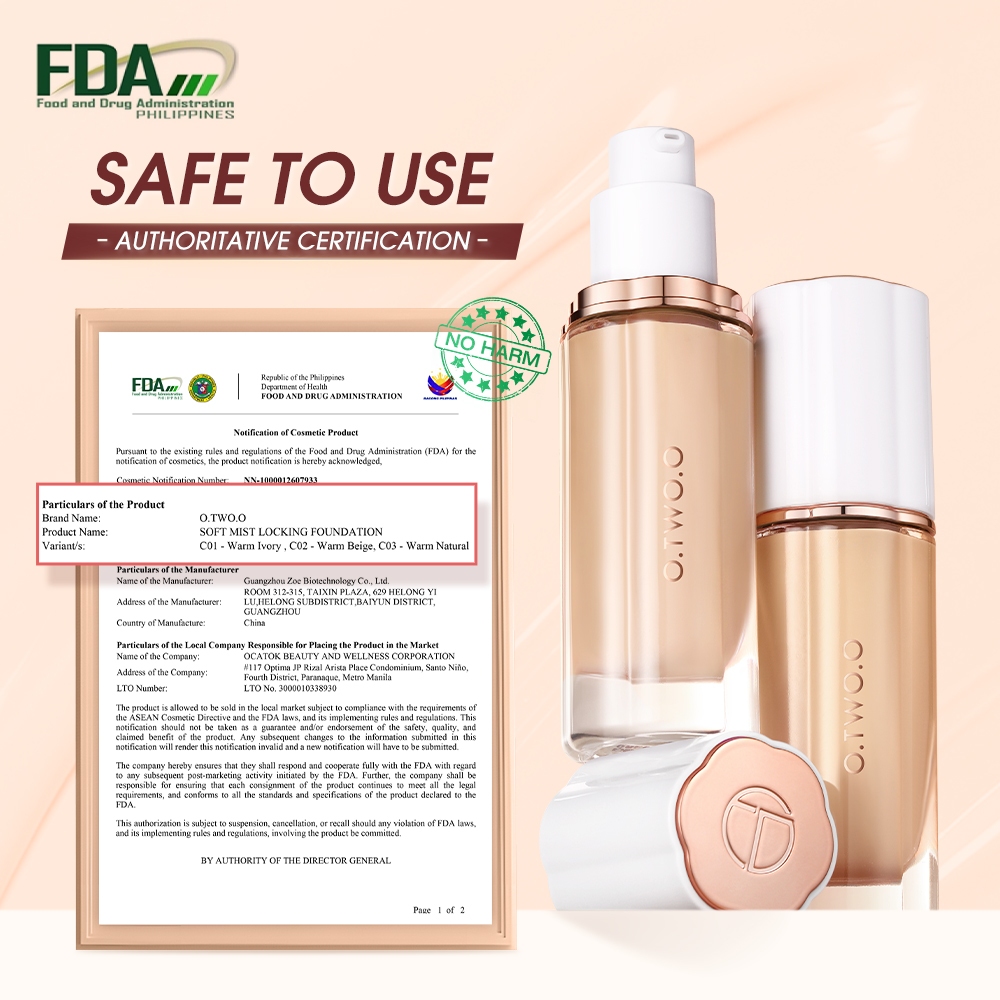 O.TWO.O Base Mate Fixação 24H 3 Cores, Corretivo Natural com Névoa Suave