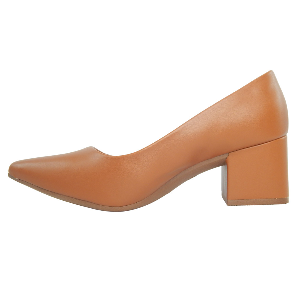 Scarpin Salto Bloco Médio Feminino Bico Fino Casual Clássico Trabalho Confortável Via Uno Original