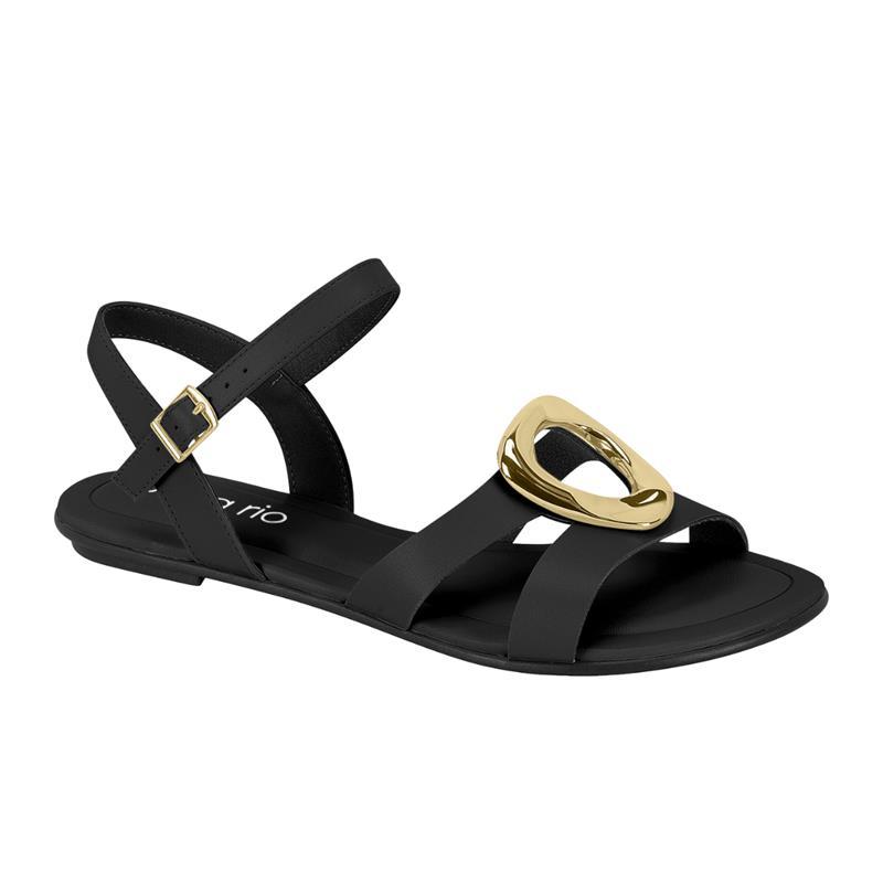 Sandália Feminina Rasteira Detalhe Circular Dourado Ajustável Delicada Elegante Beira Rio Original