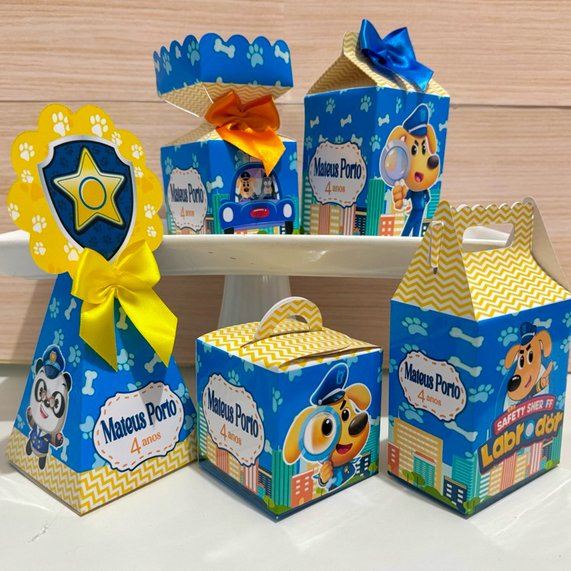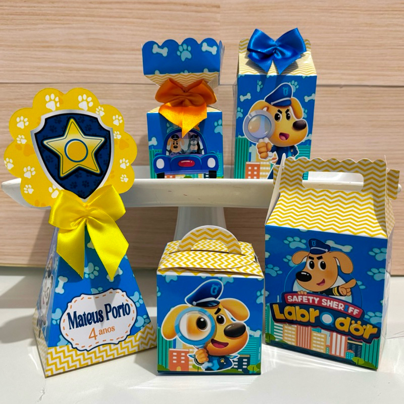 Kit Personalizados Detetive Labrador Cachorro para Festa Infantil Mimo/ Papelaria/ Caixinhas/ aniversário