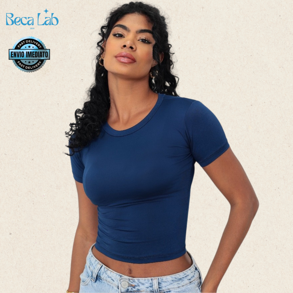 Baby Tee Feminina Blusa de Compressão Slim Fit Baby Look Academia e Dia a Dia