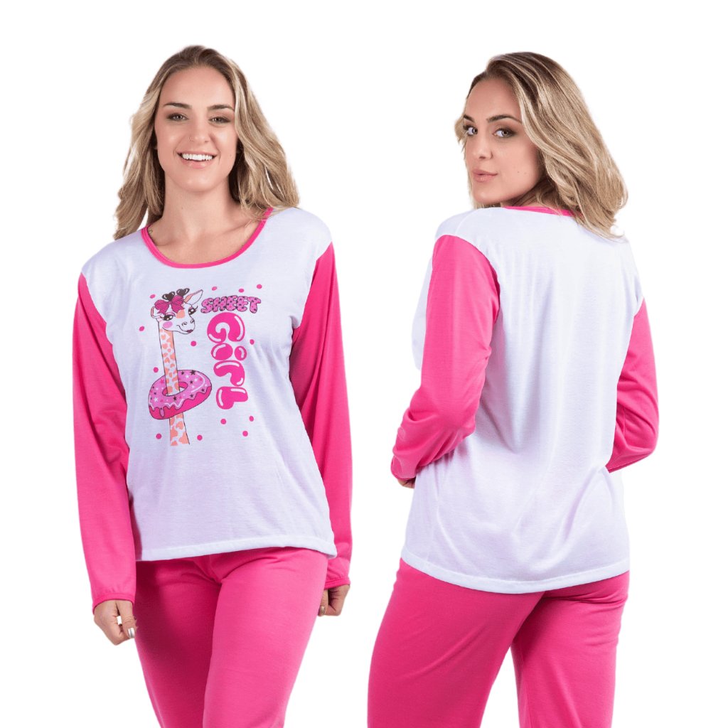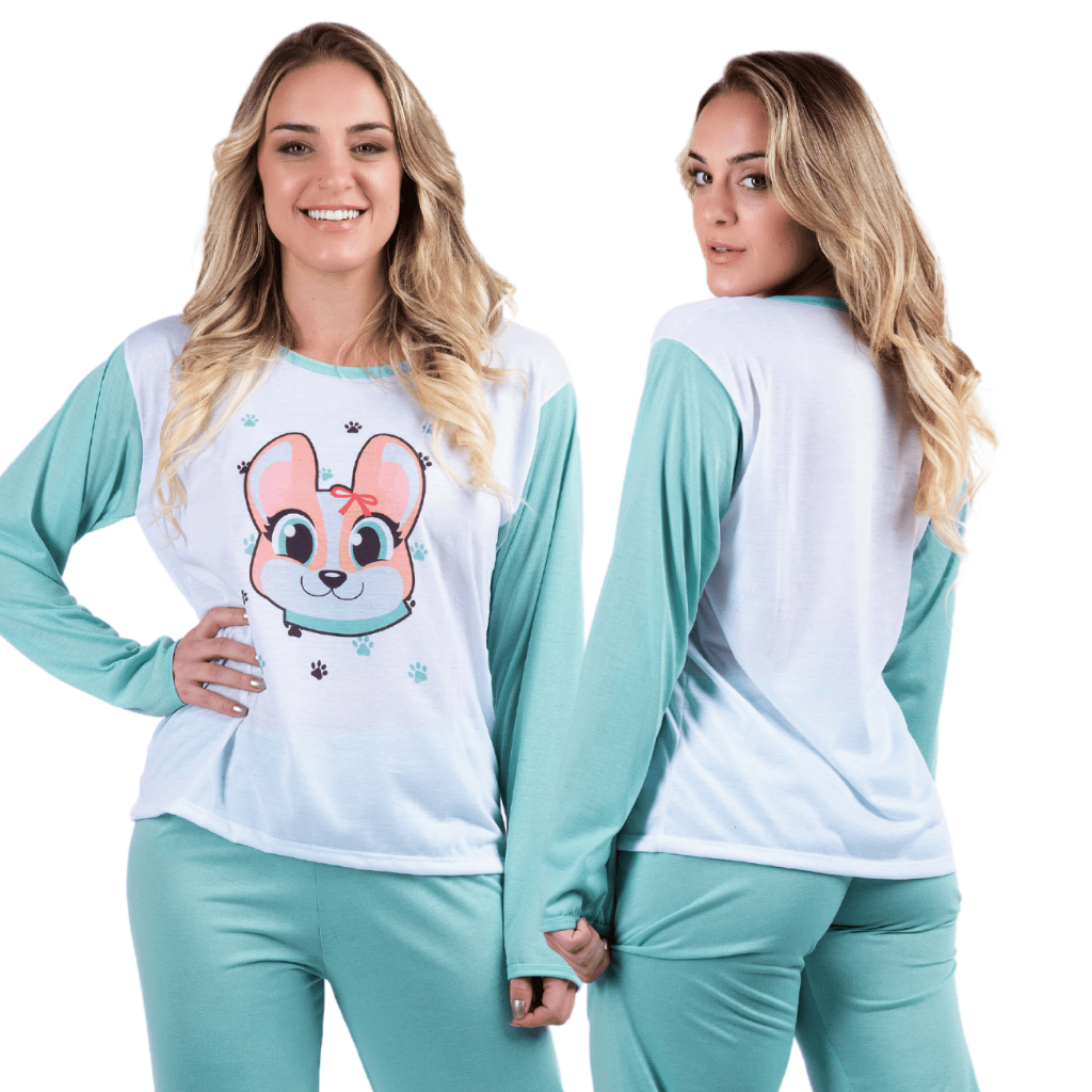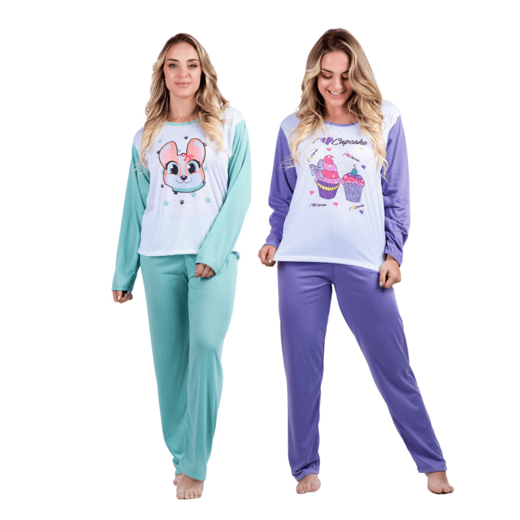 Kit 2 Pijamas Conjunto Colorido Manga Longa Calça Inverno Noite Confortável Dormir Estampada Promoção Para Revenda 314