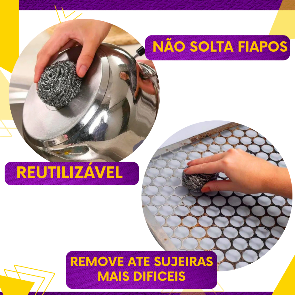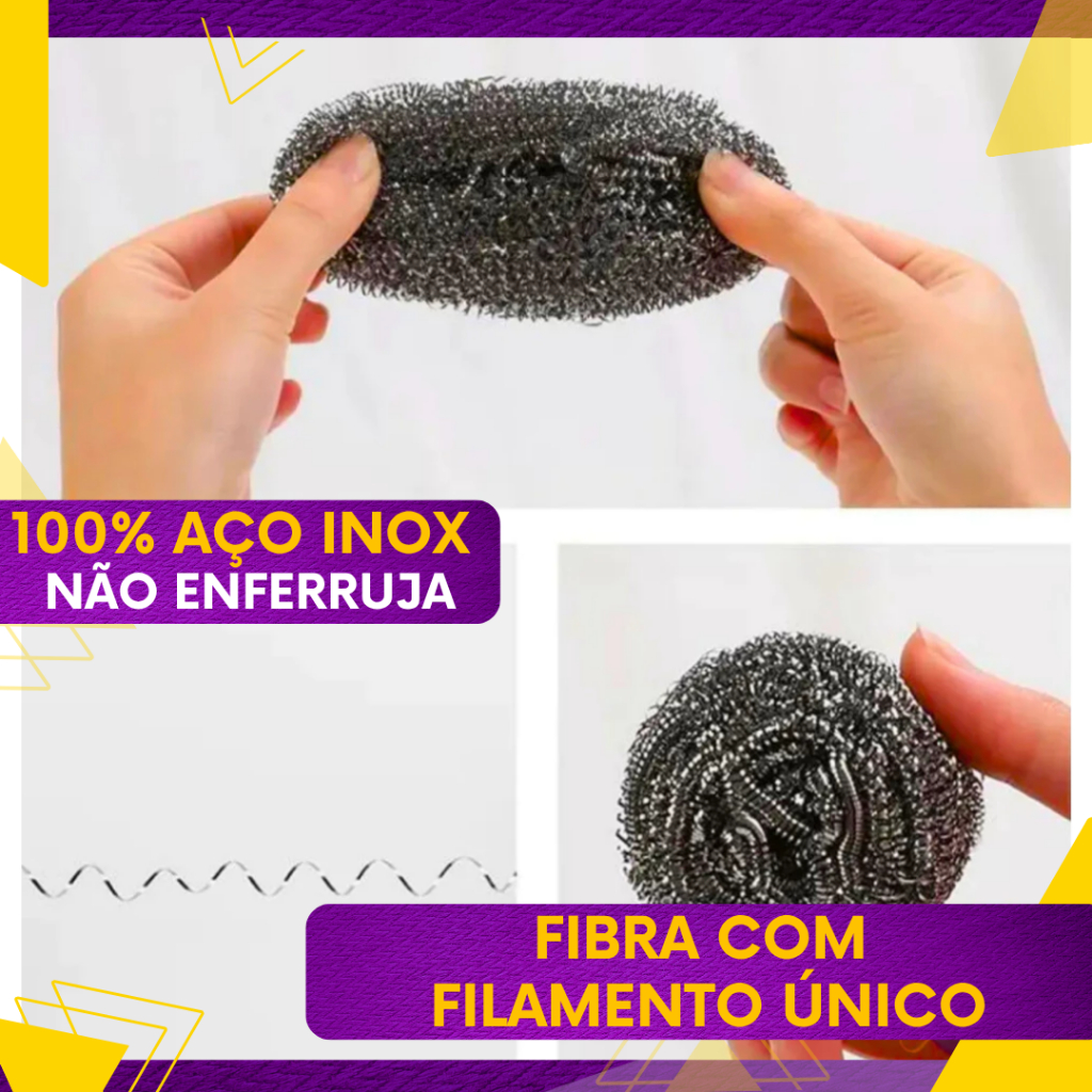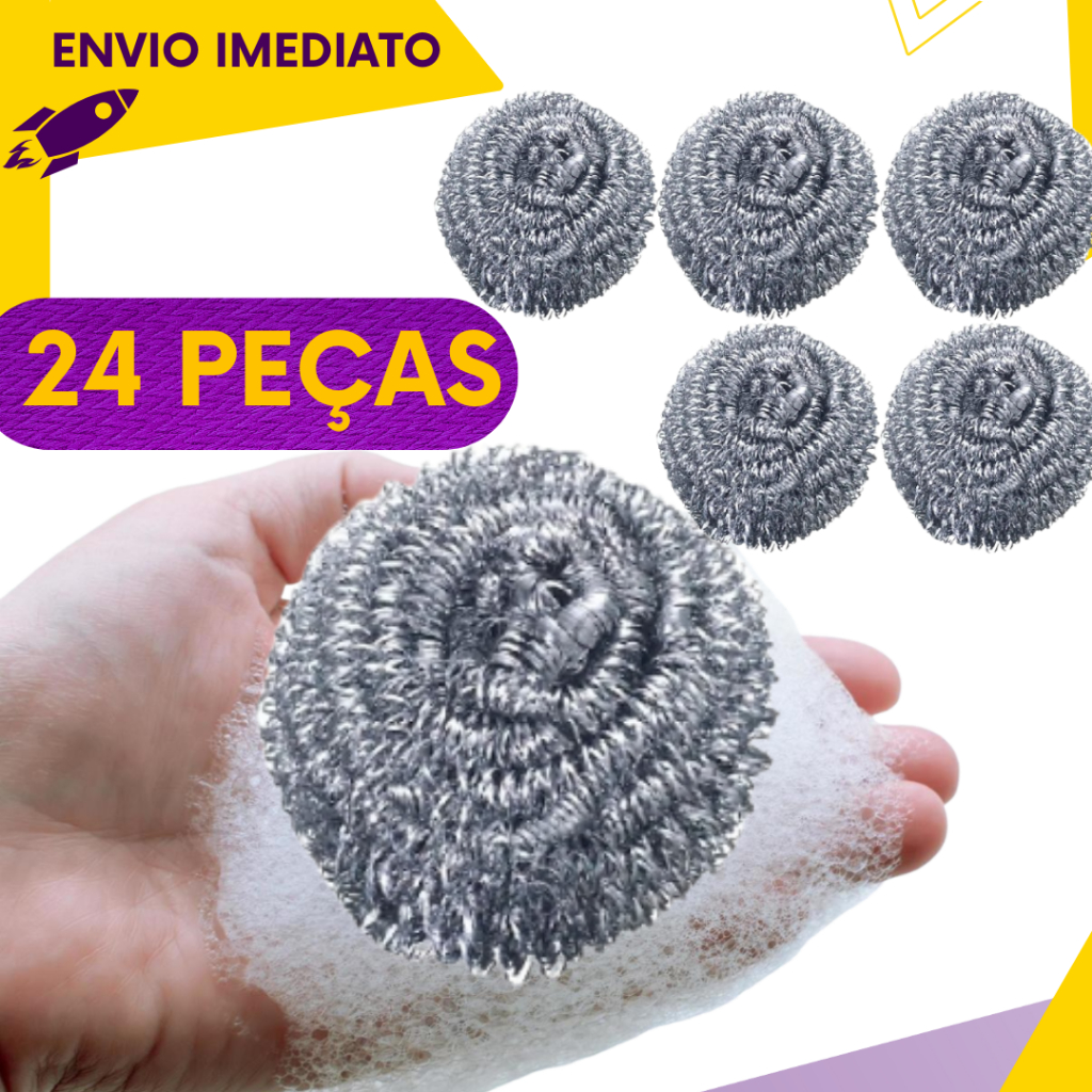 Kit 48, 24 ou 12un - Esponja de Aço Inox - Não Enferruja - Limpeza Pesada Panelas Grelhas