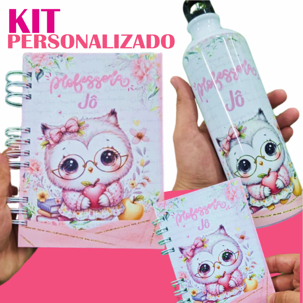Kit dia dos Professores Personalizado - Agenda 2026 + Garrafa Alumínio + Brinde - (Caderneta)