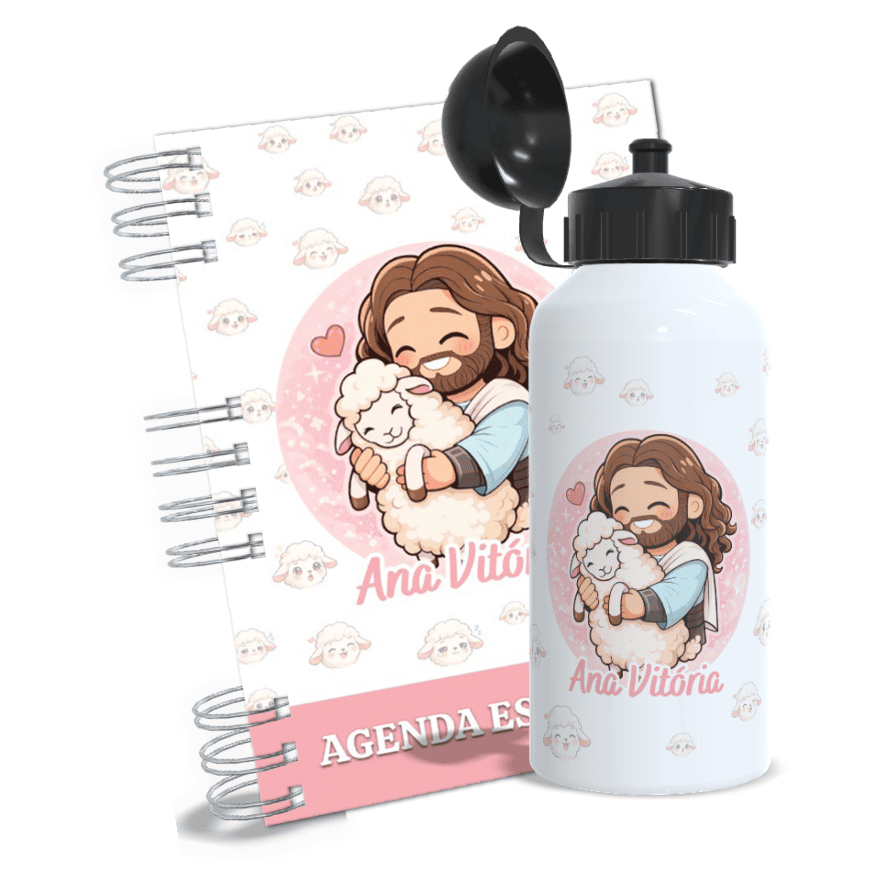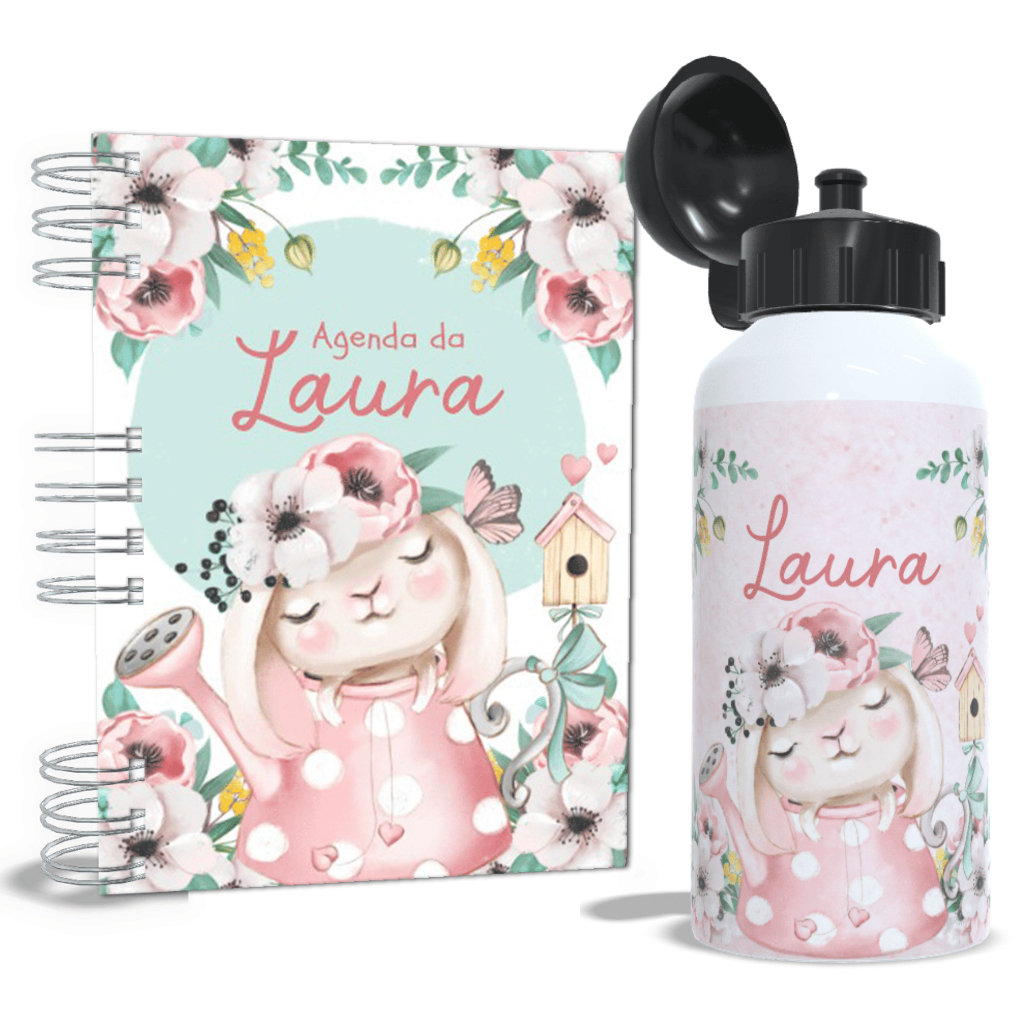 Agenda Escolar + Garrafa - Personalizada - Caderno Permanente - Kit - Personalize com Nome