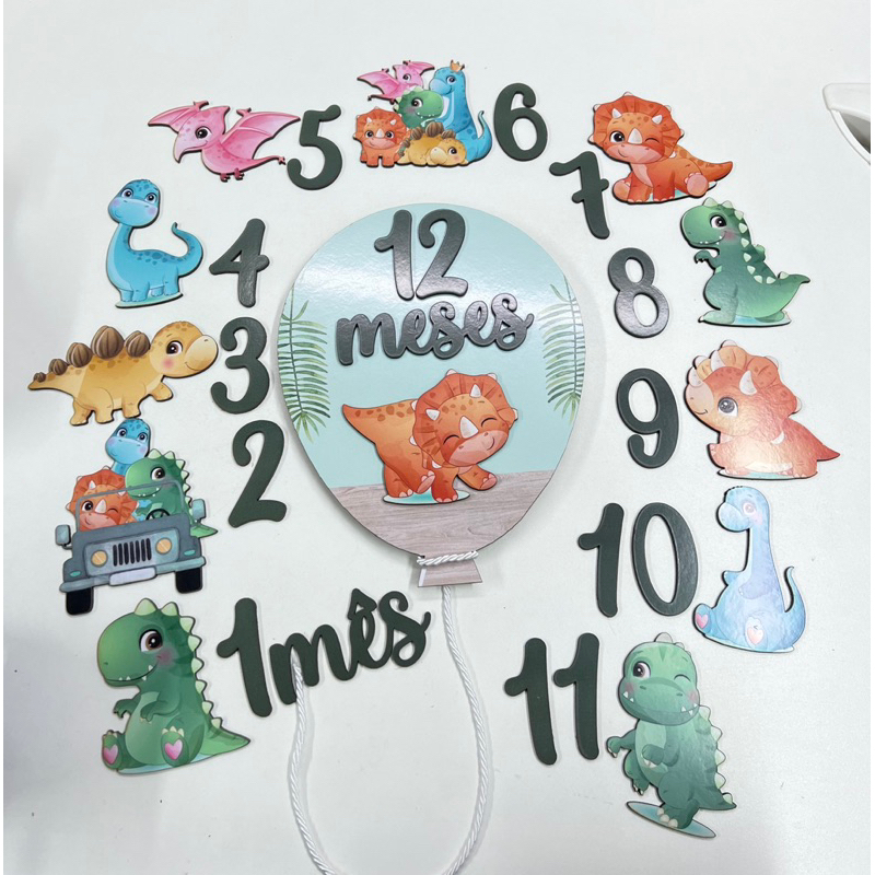 Kit mesversario Dinossauro Baby Dino Baby Indicado para fotos de acompanhamento mensais