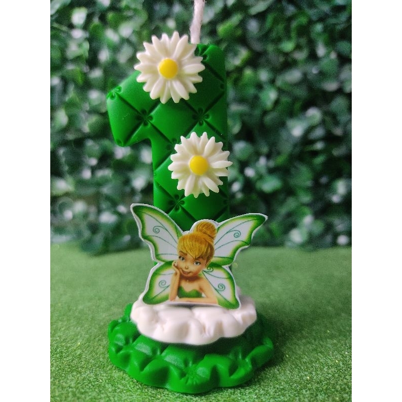 vela aniversário com tema Sininho tinker Bell/Decoração festa/Topo de bolo/Vela biscuit