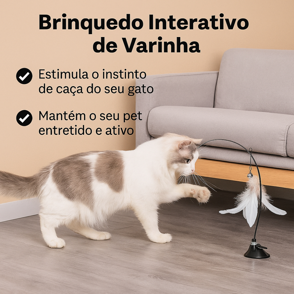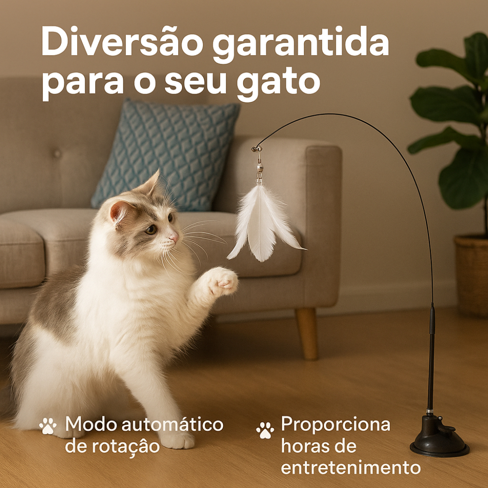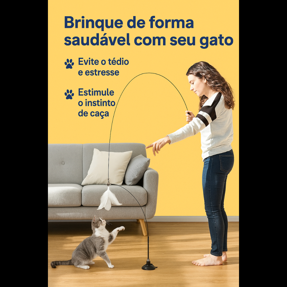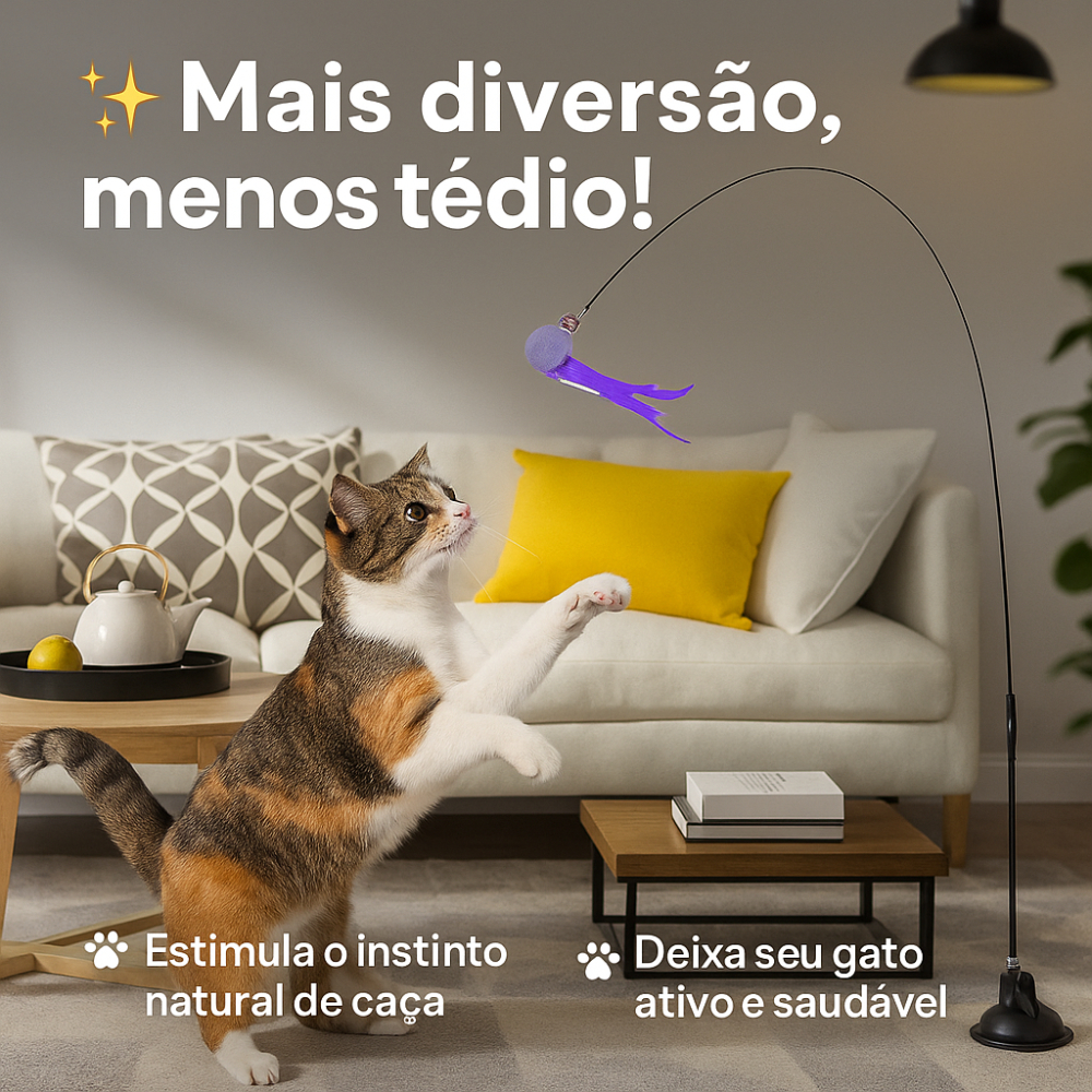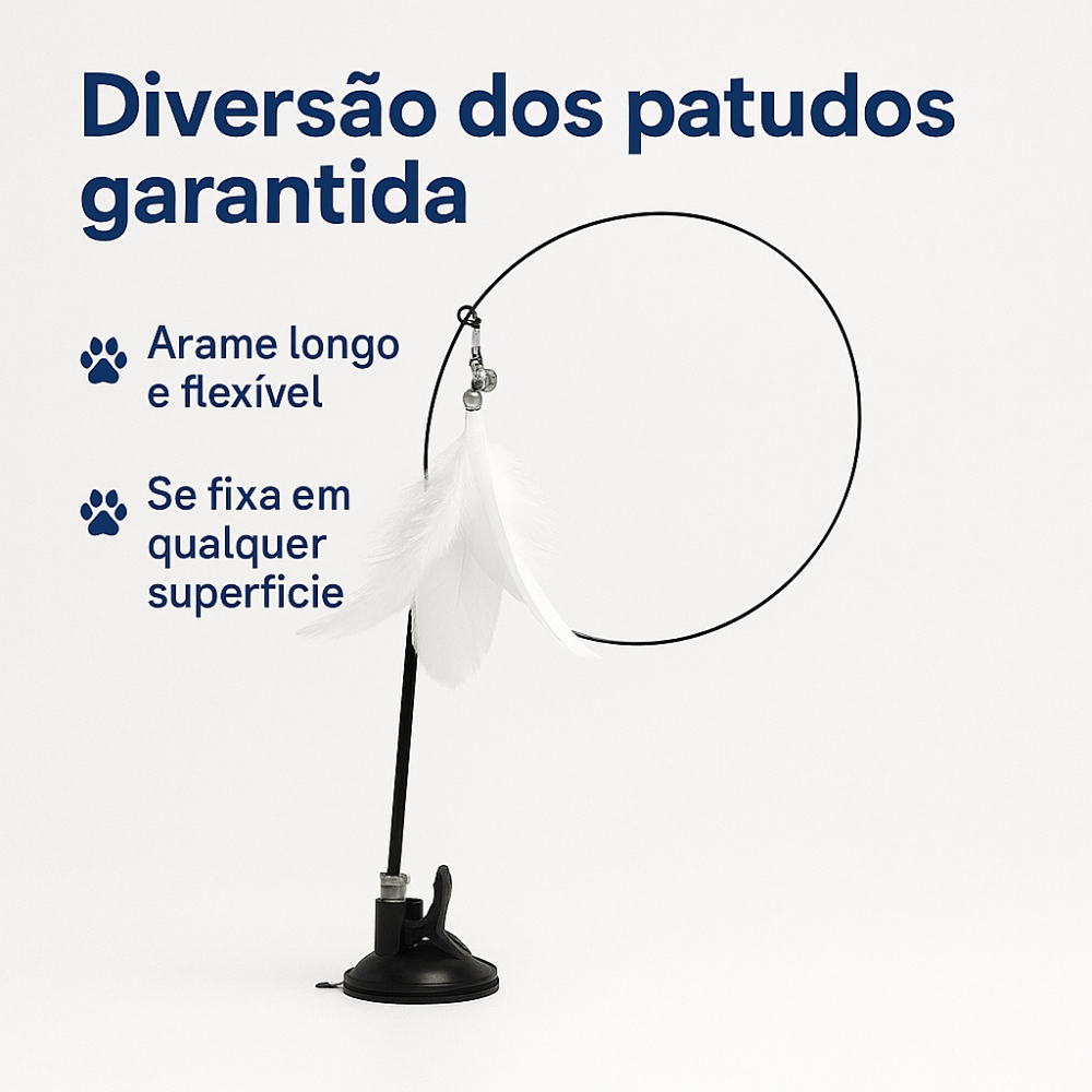 Brinquedo Varinha Gato Pena de Passaro Com Ventosa Fixa No Chao