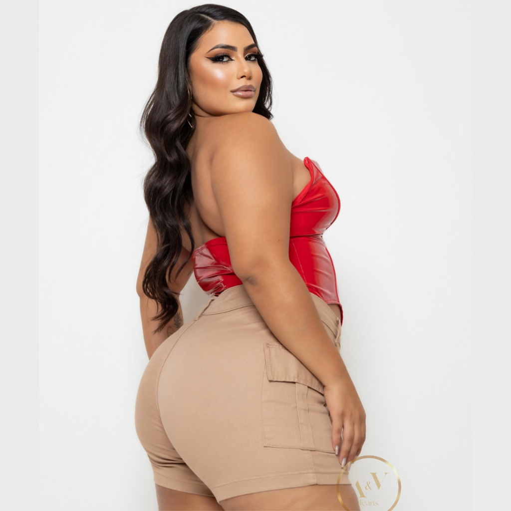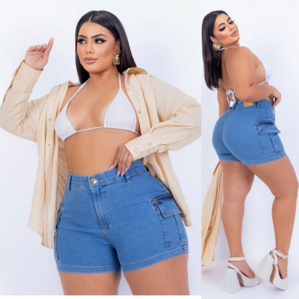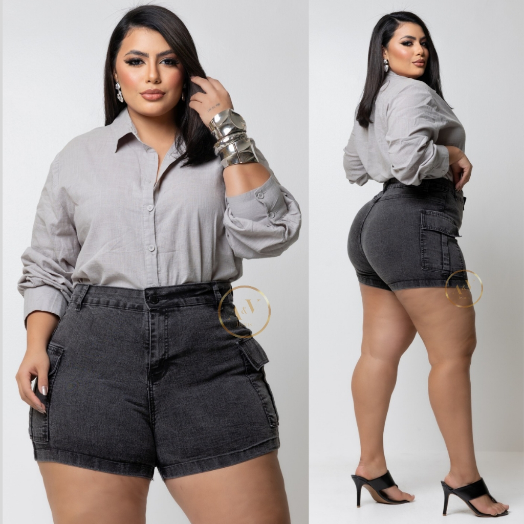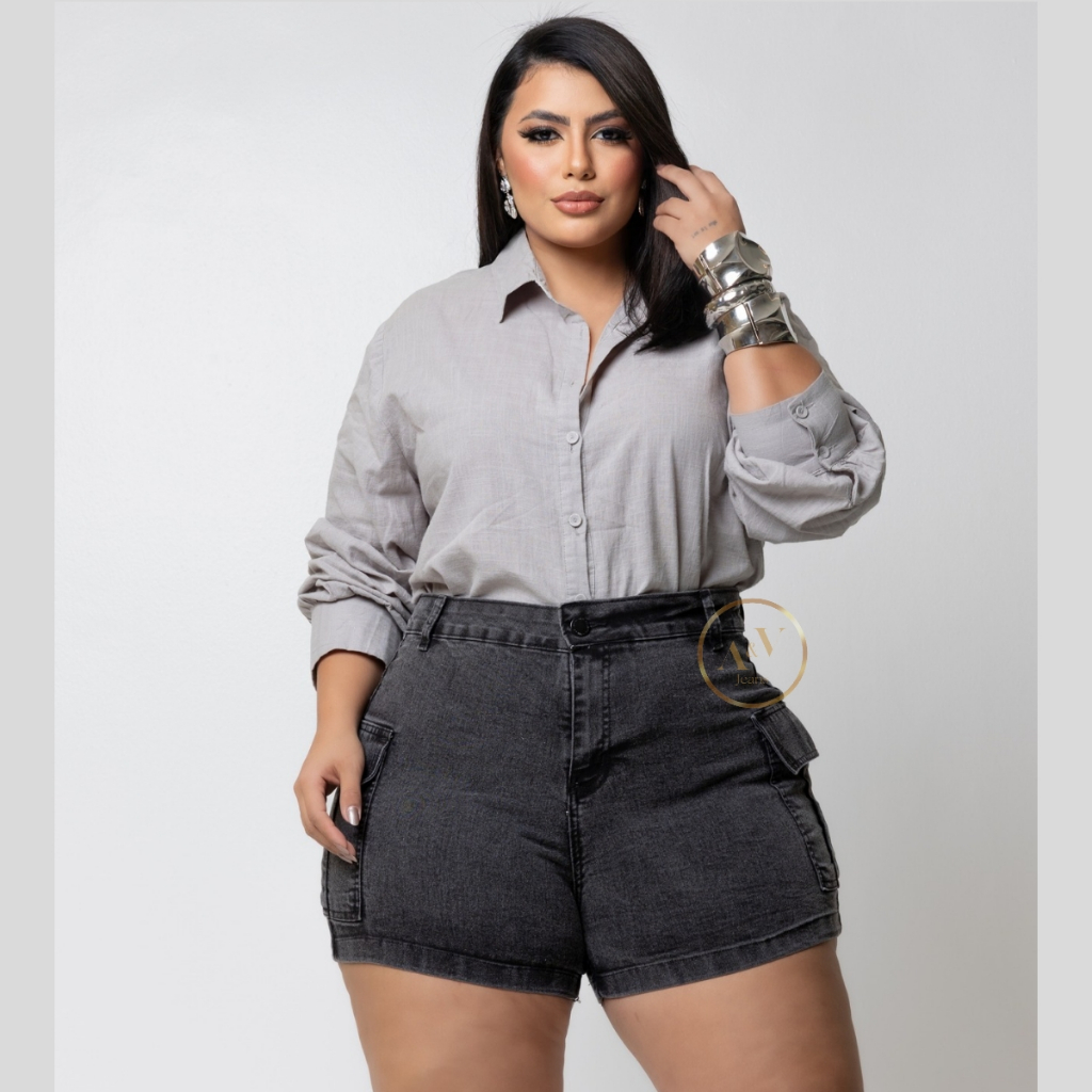 Short Jeans Cargo Plus Size Feminino Com Lycra