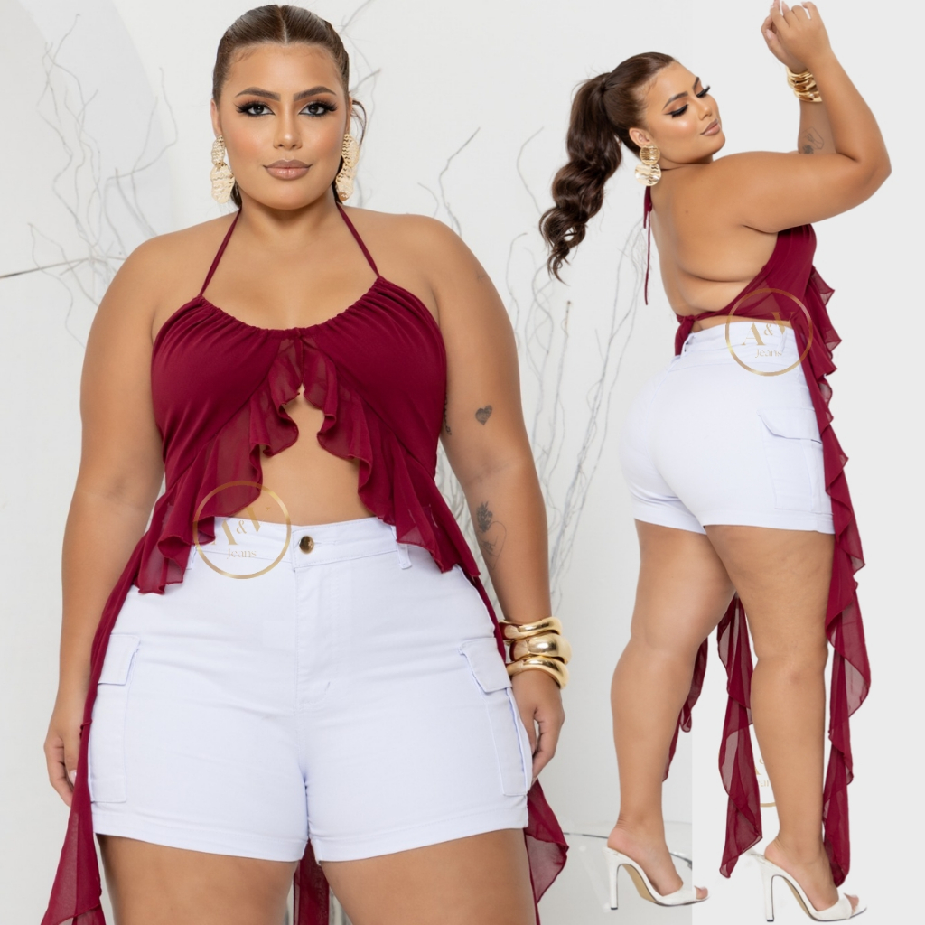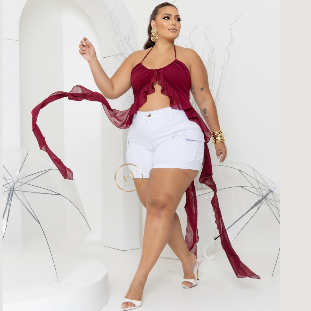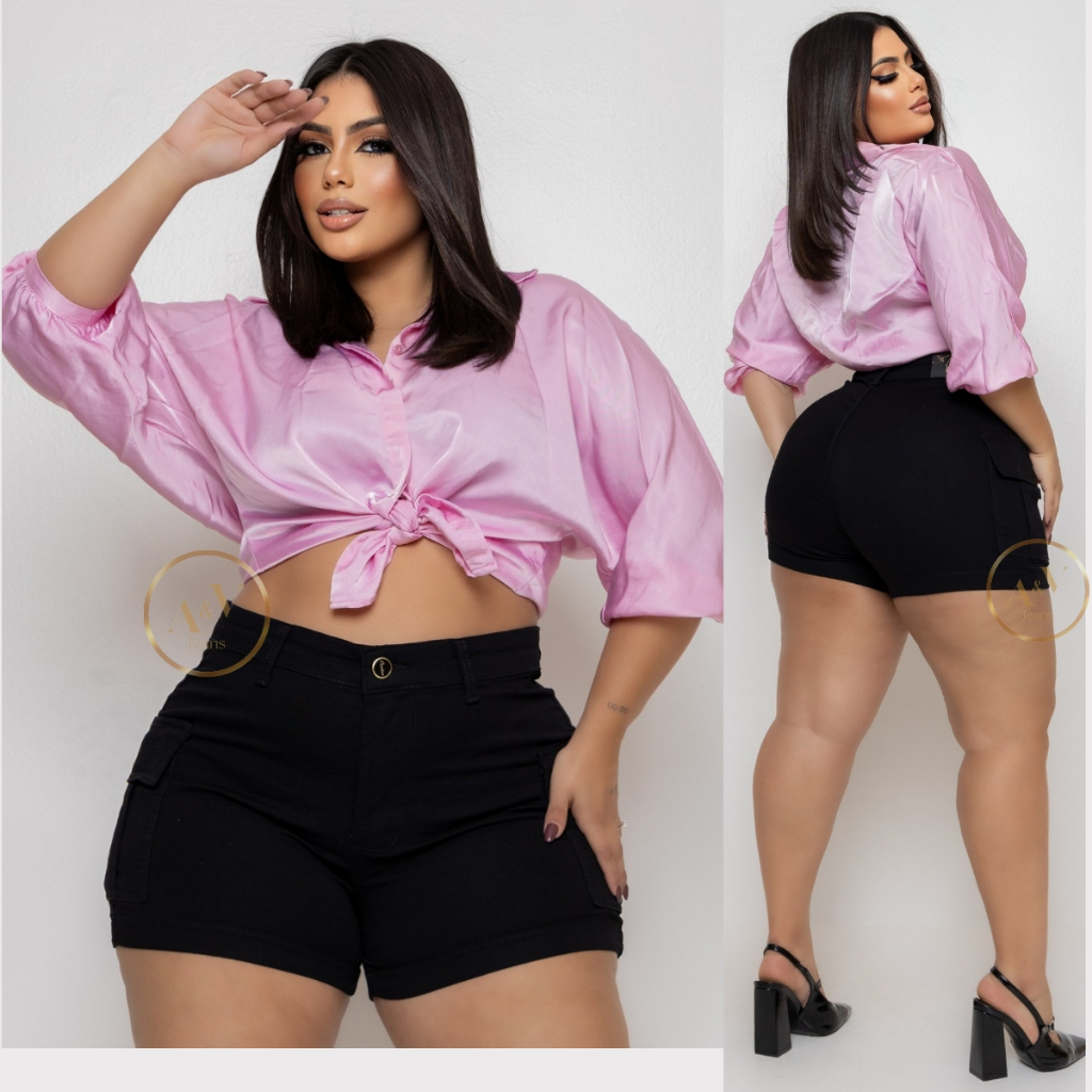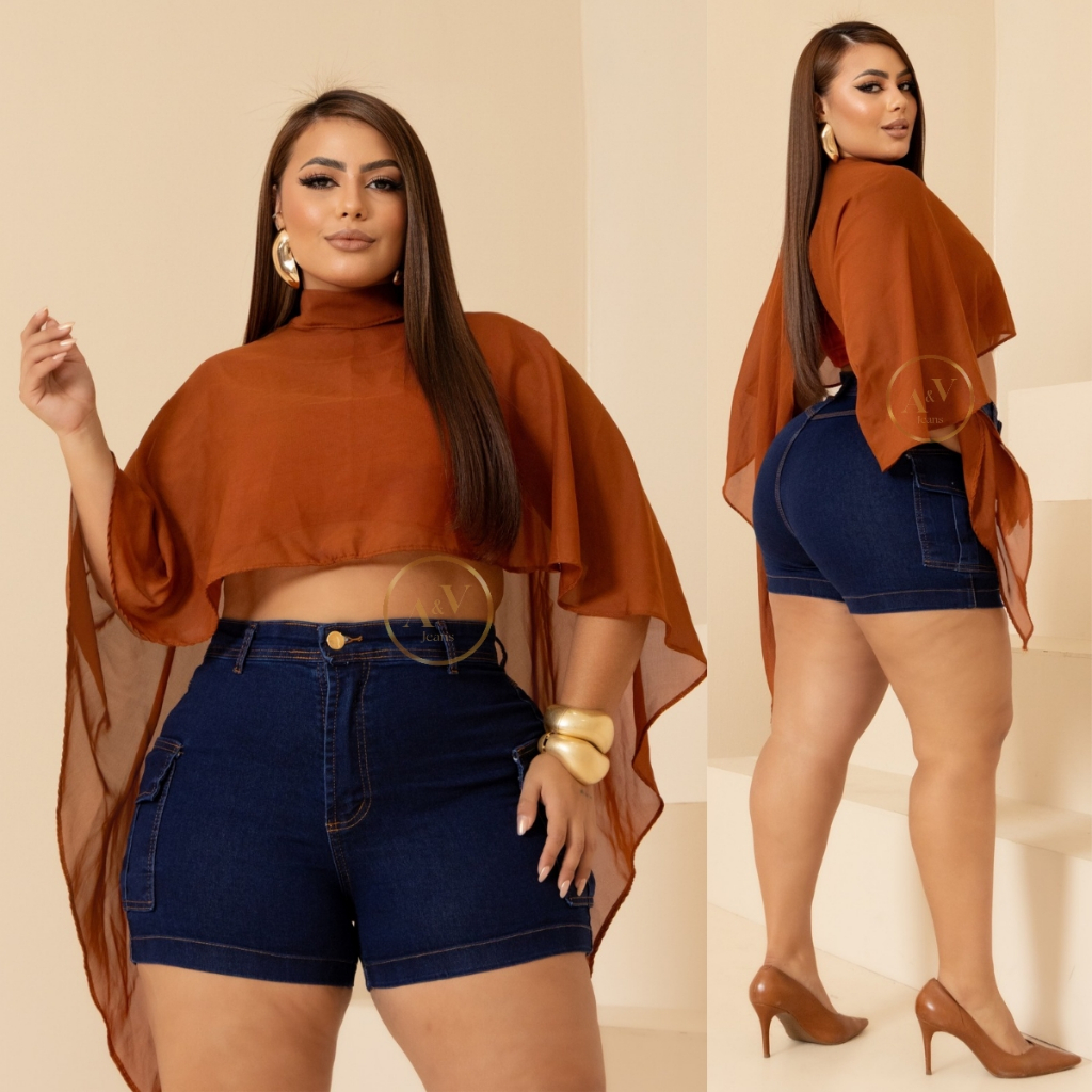Short Jeans Cargo Plus Size Feminino Com Lycra