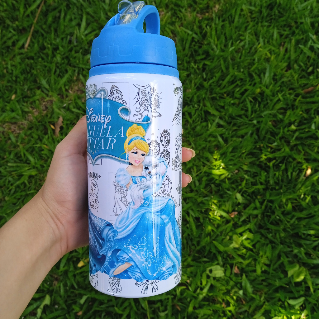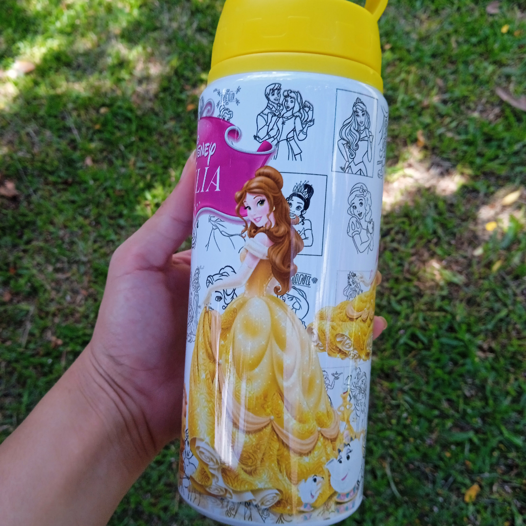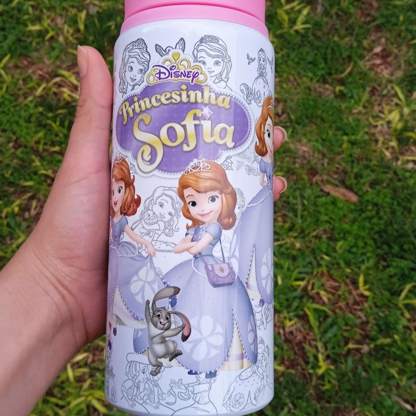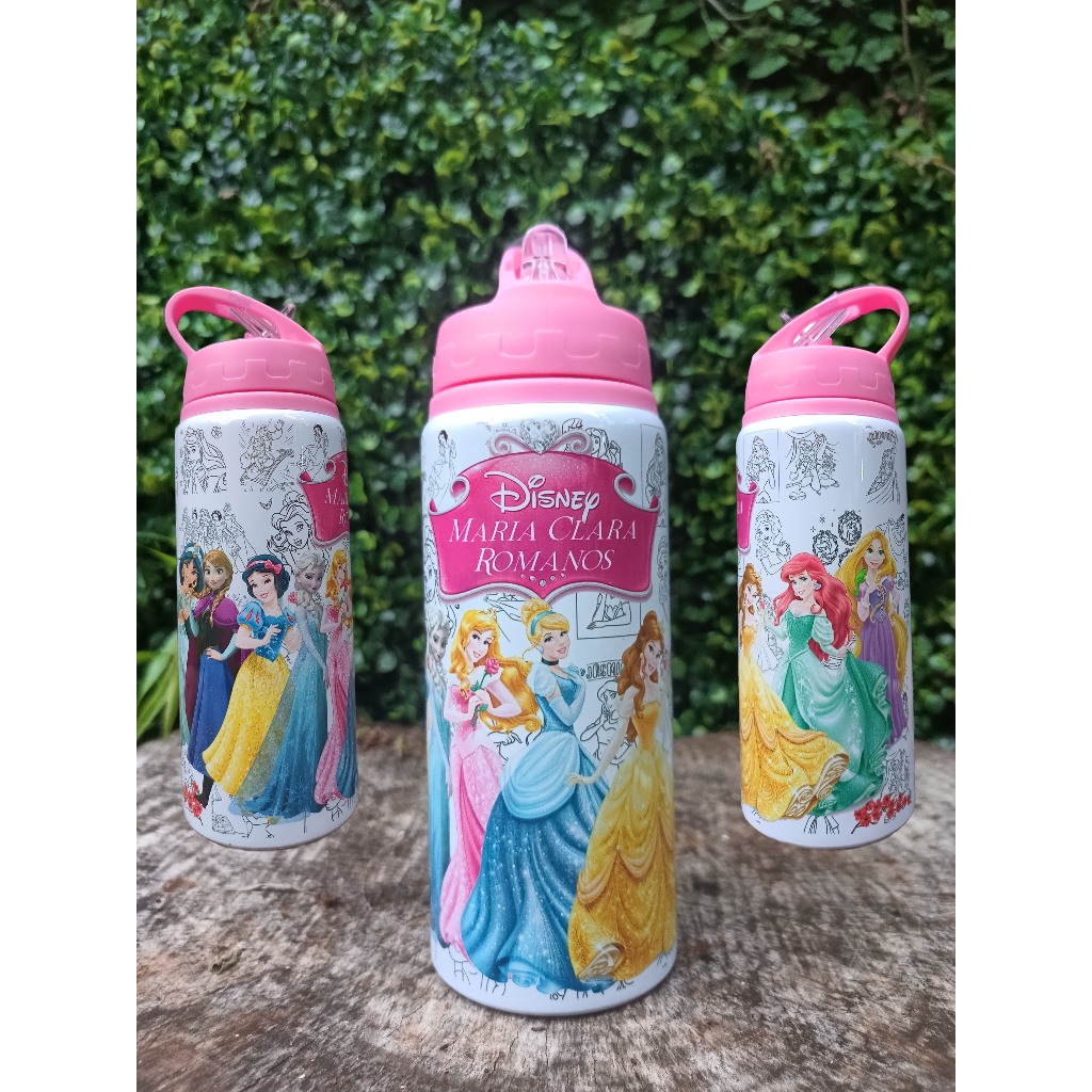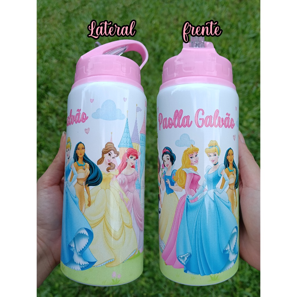 Garrafa princesas personalizada com nome 600ml de aluminio Infantil princesa sofia cinderela