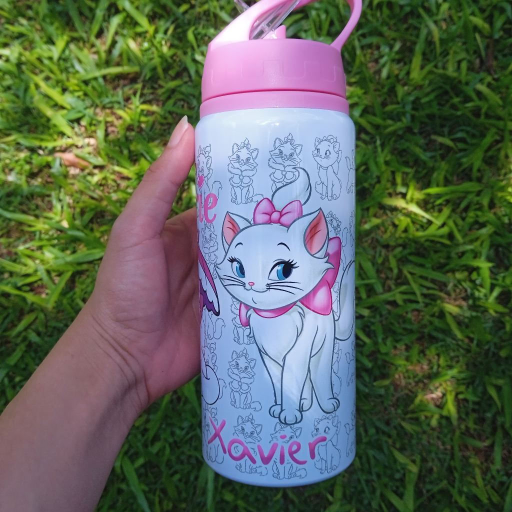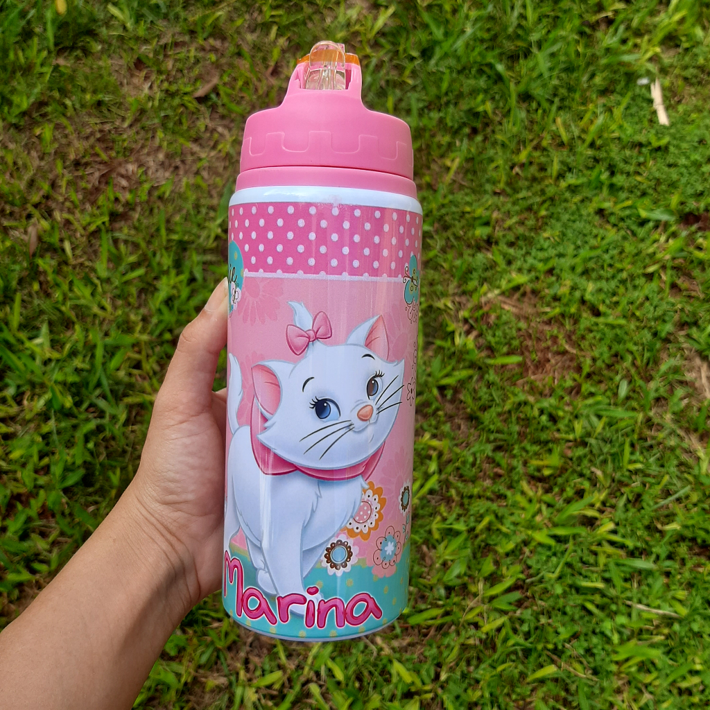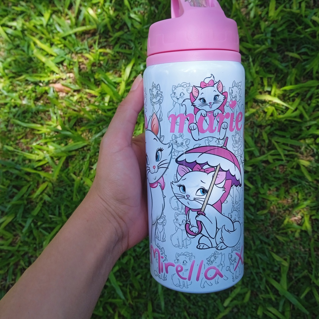 Garrafa Gatinha Marie Personalizada Com Nome 600ml De Aluminio Infantil
