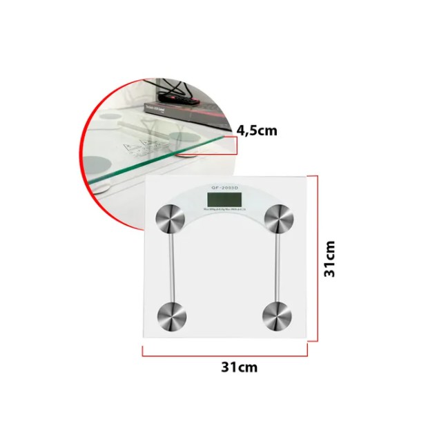 Balança Corporal 180kg vidro Academia Banheiro Quadrada KG/OZ bateria
