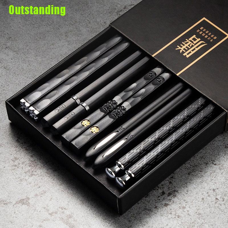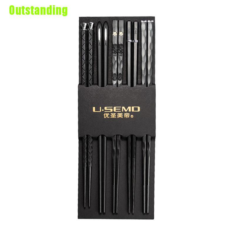 Outstanding 5 Pares De Pauzinhos De Gravação A Laser De Liga Metálica Antiderrapante Sushi Reutilizável