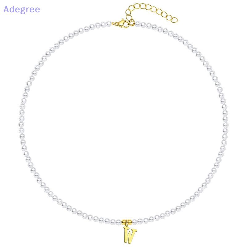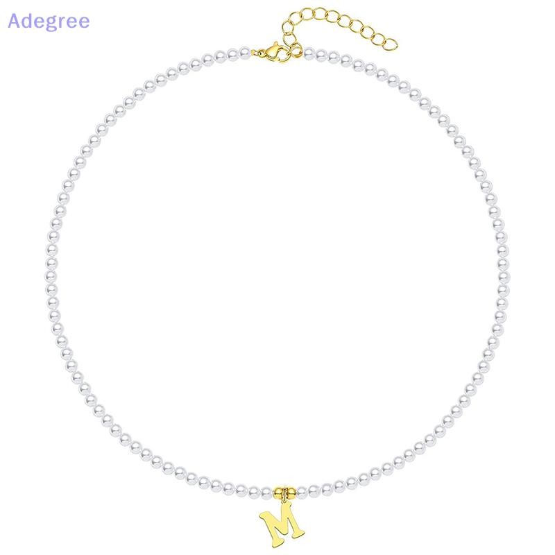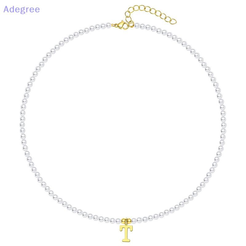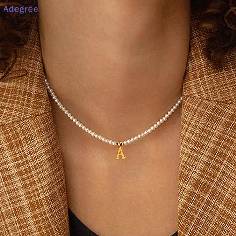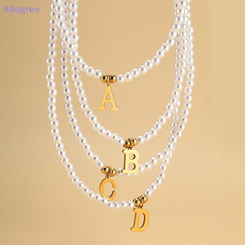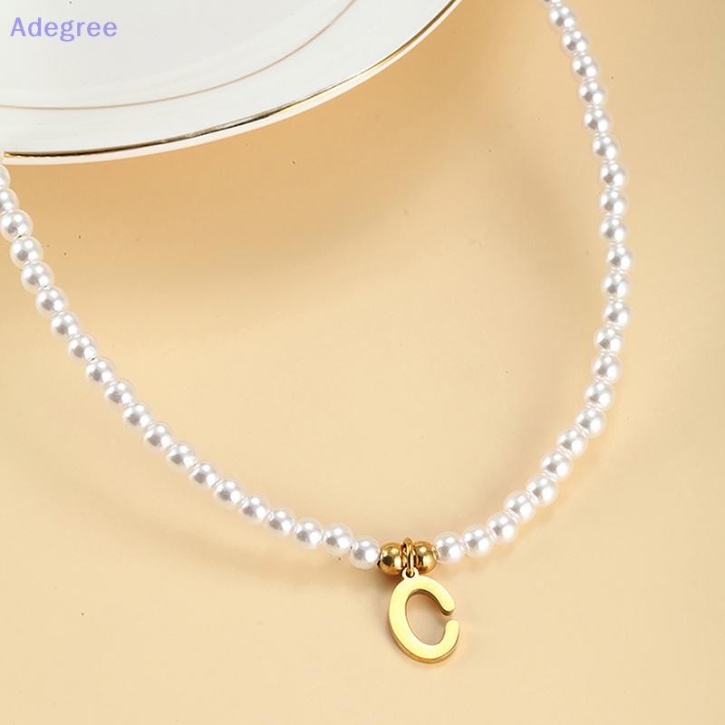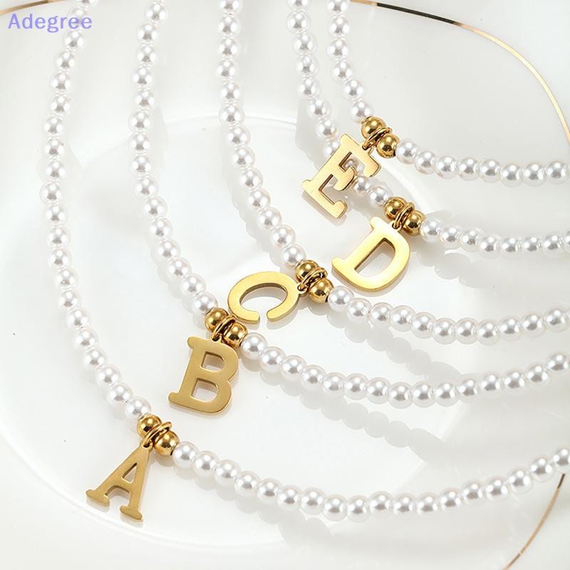 Adegree Letras Iniciais De Aço Inoxidável Pingente Colar Pérolas Simuladas Frisado Clavícula Corrente Para Mulheres Moda