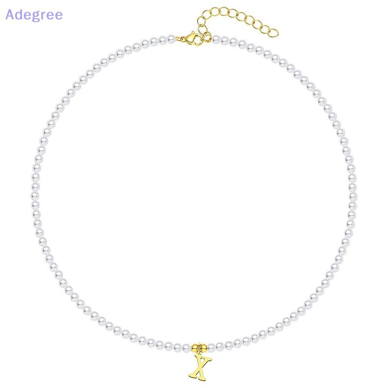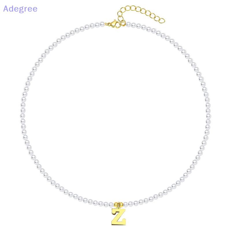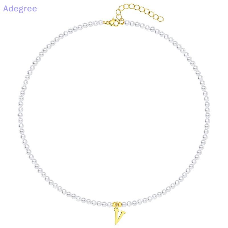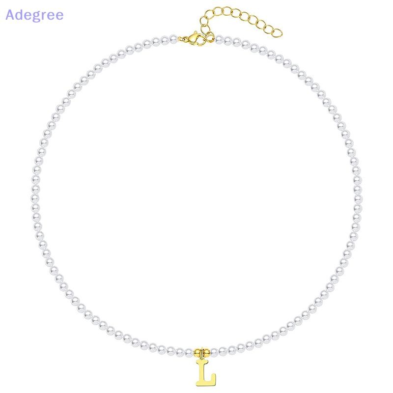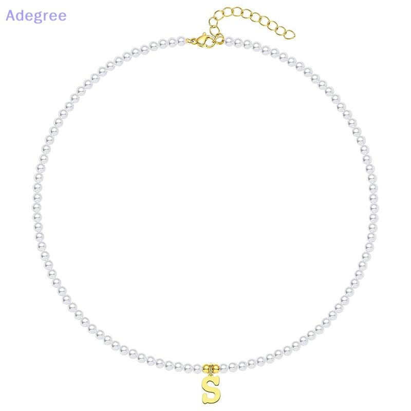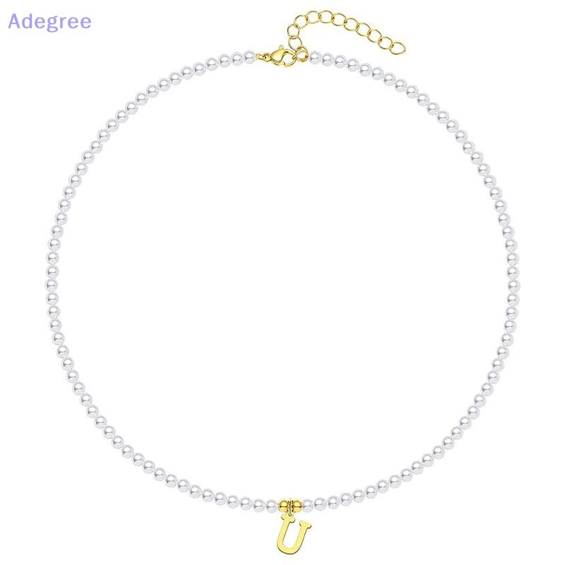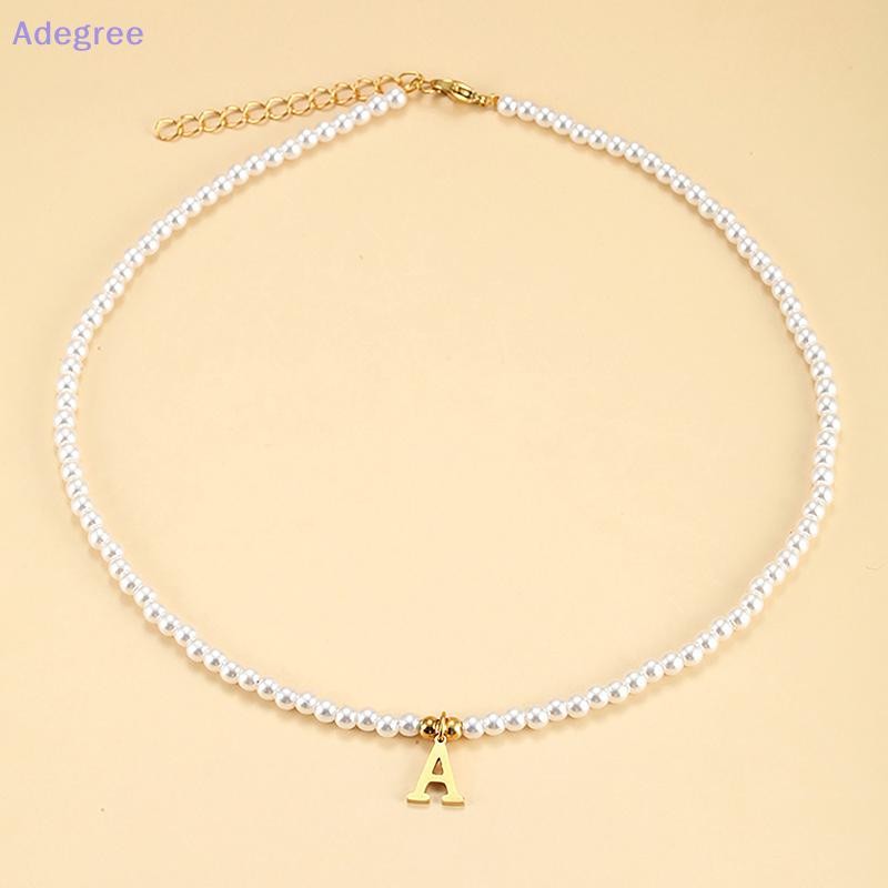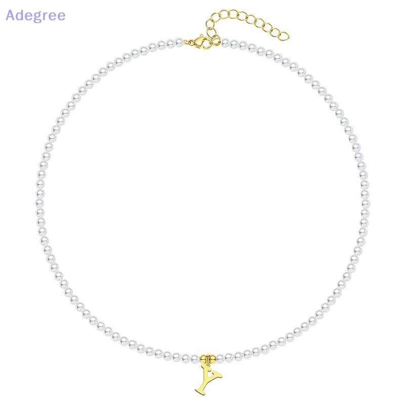 Adegree Letras Iniciais De Aço Inoxidável Pingente Colar Pérolas Simuladas Frisado Clavícula Corrente Para Mulheres Moda