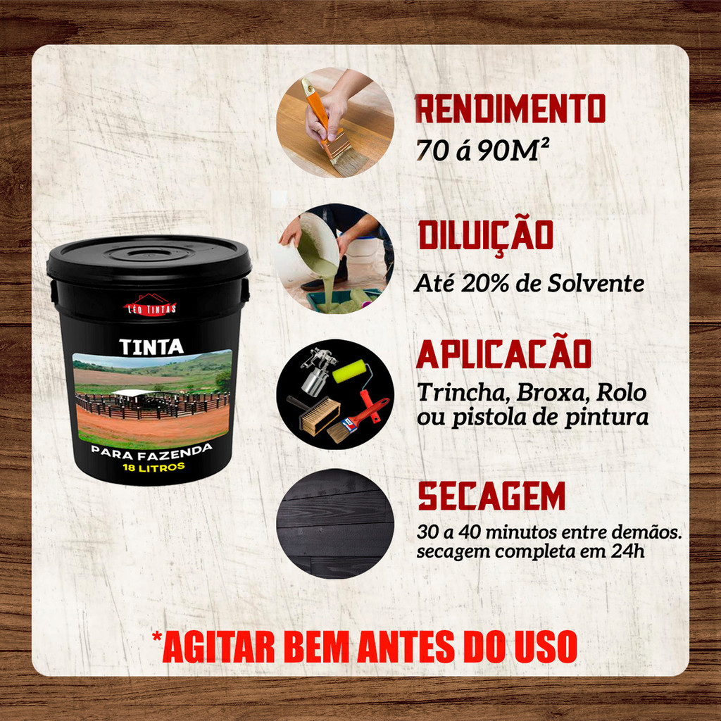 Tinta Para Fazenda, Curral,mangueiras, Madeira e Concreto 18lts preto