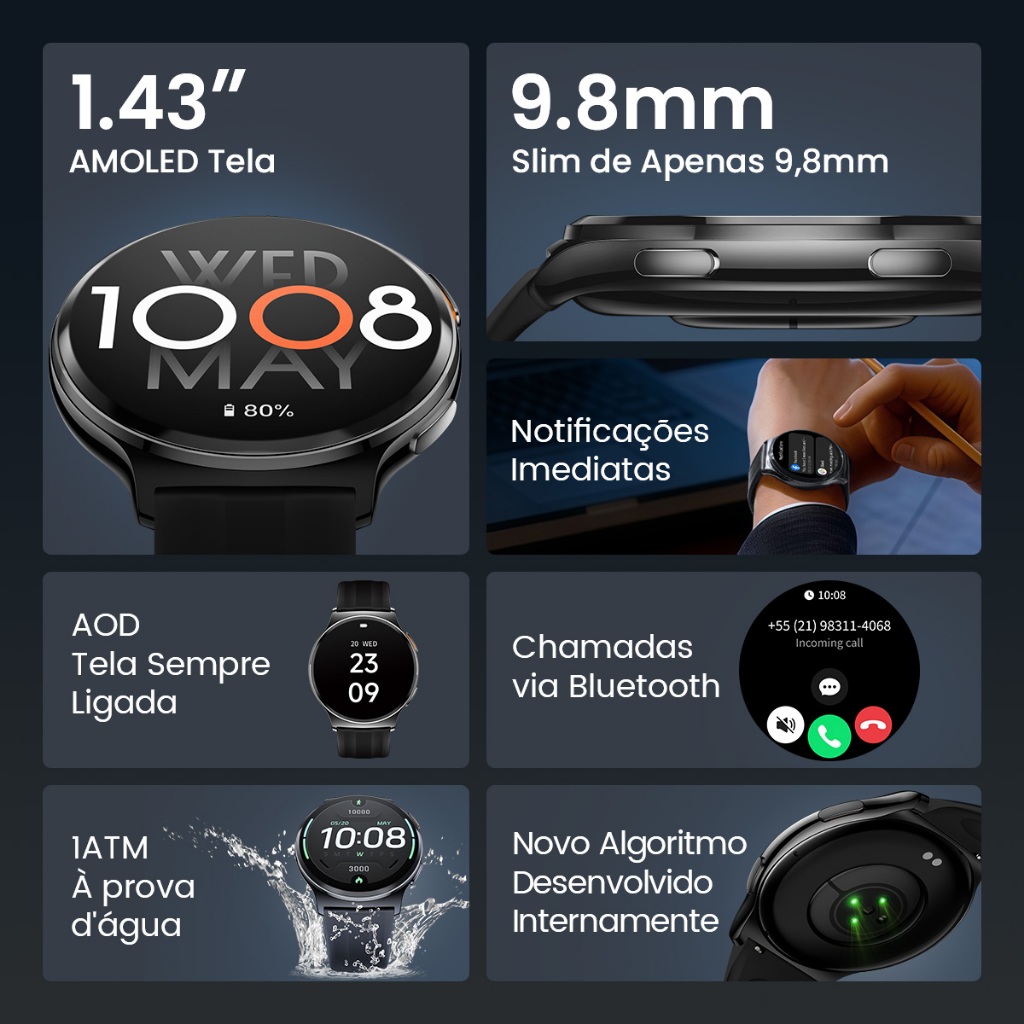 Haylou Solar Lite 2 Smartwatch Relogio Esporte Correndo Ritmo AMOLED AOD 1ATM Bluetooth 5.4 Masculino Feminino