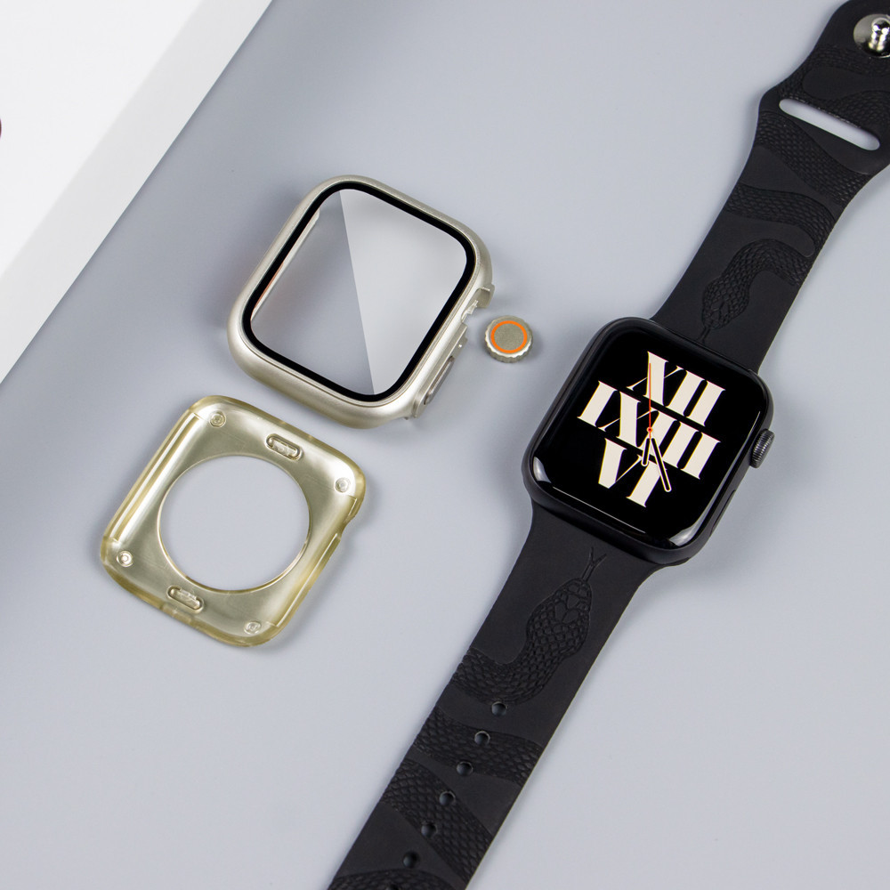 Mudança Para Ultra Caixa De Cobertura Completa Protetor De Tela De Vidro Temperado Compatível Relógio Apple 45mm 44mm 40MM 41MM IWatch Série 9 8 7 6 SE 5 4