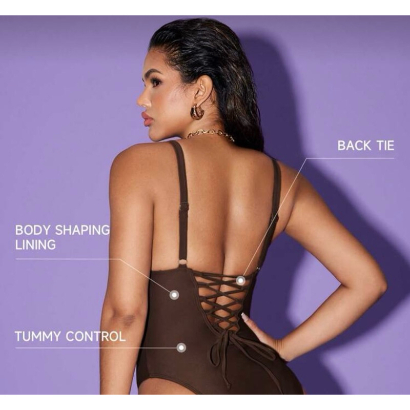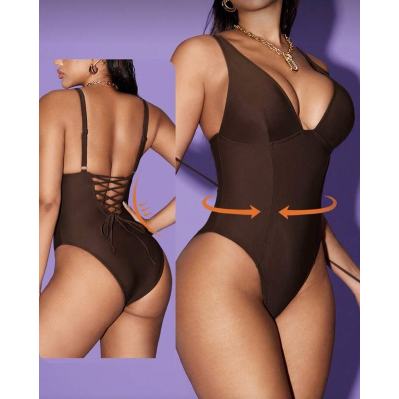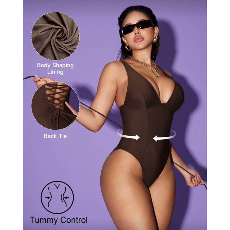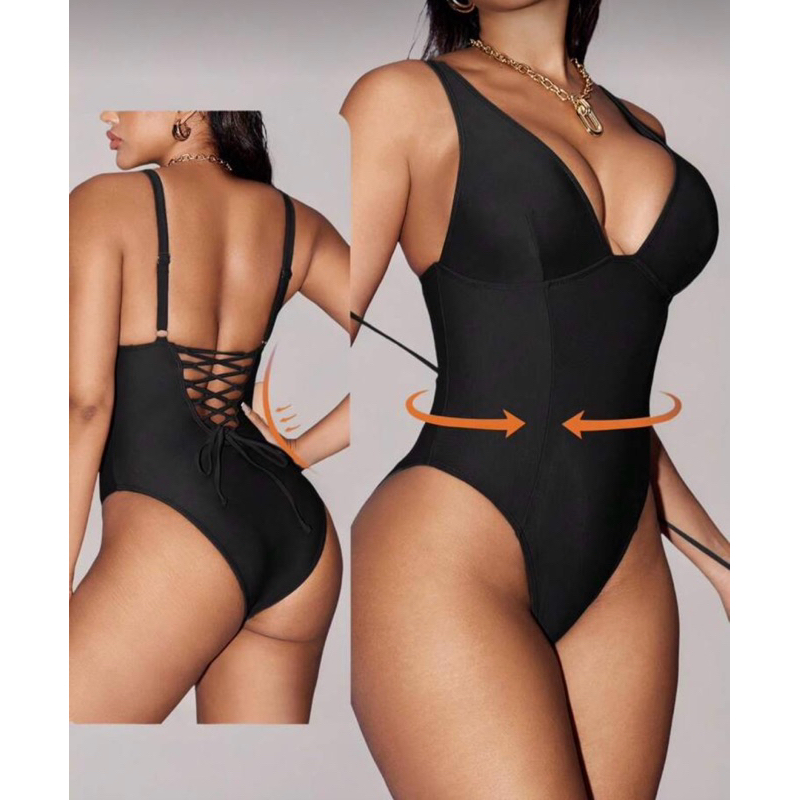 Body/maiô cinta, detalhe em espartilho nas costas para acinturar com bojo, tecido suplex, semi fio, decote frente única