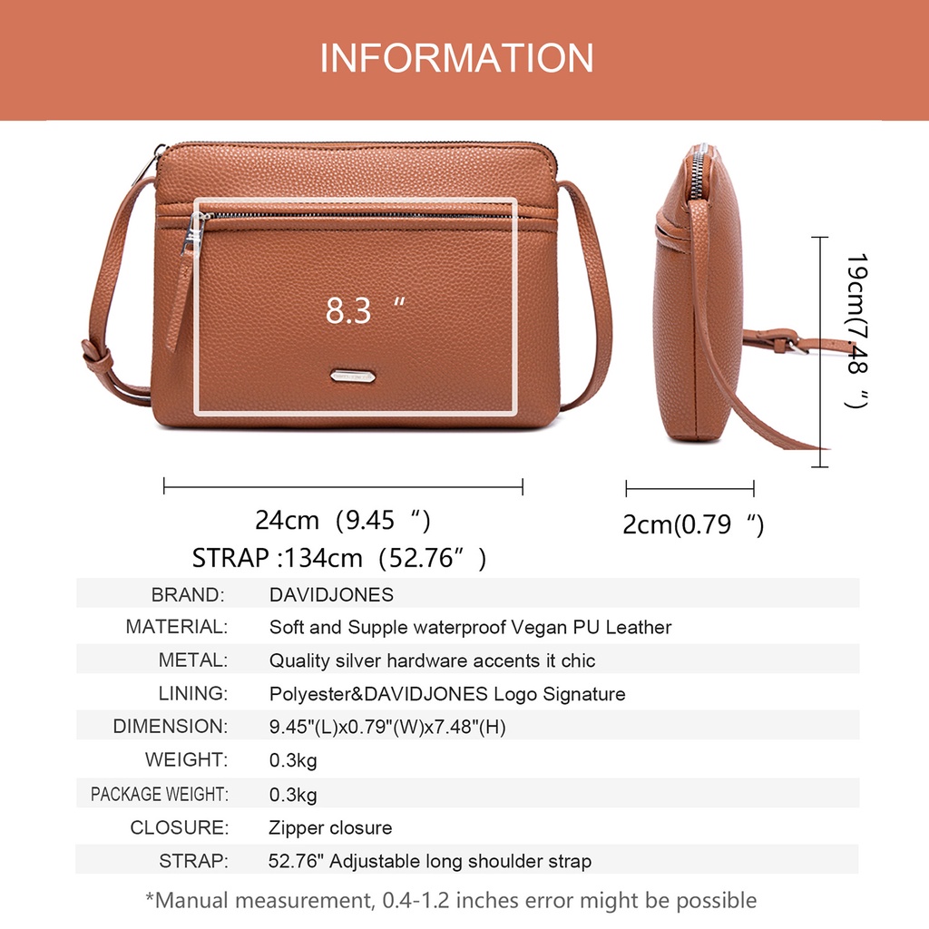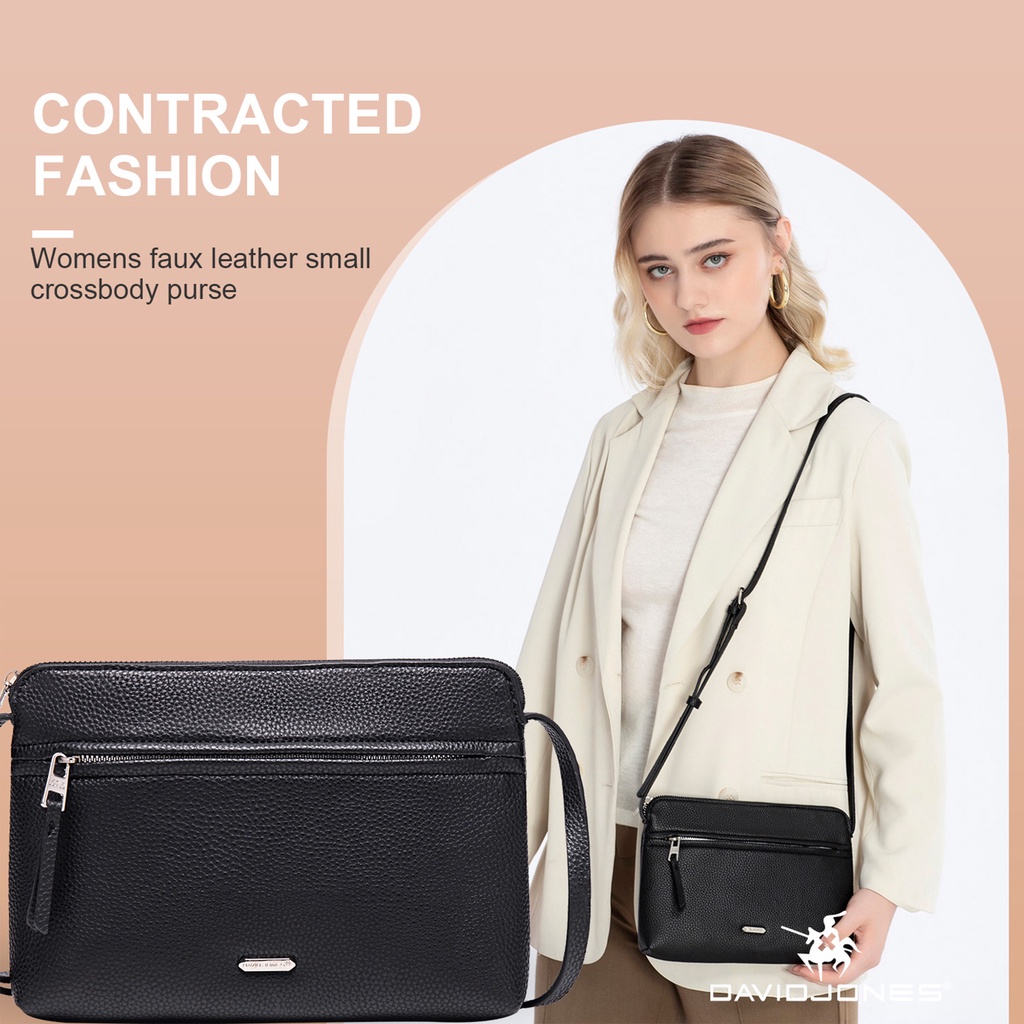 David Jones Feminina Couro do falso Zip Bolsas de Ombro Bolsas de Mão