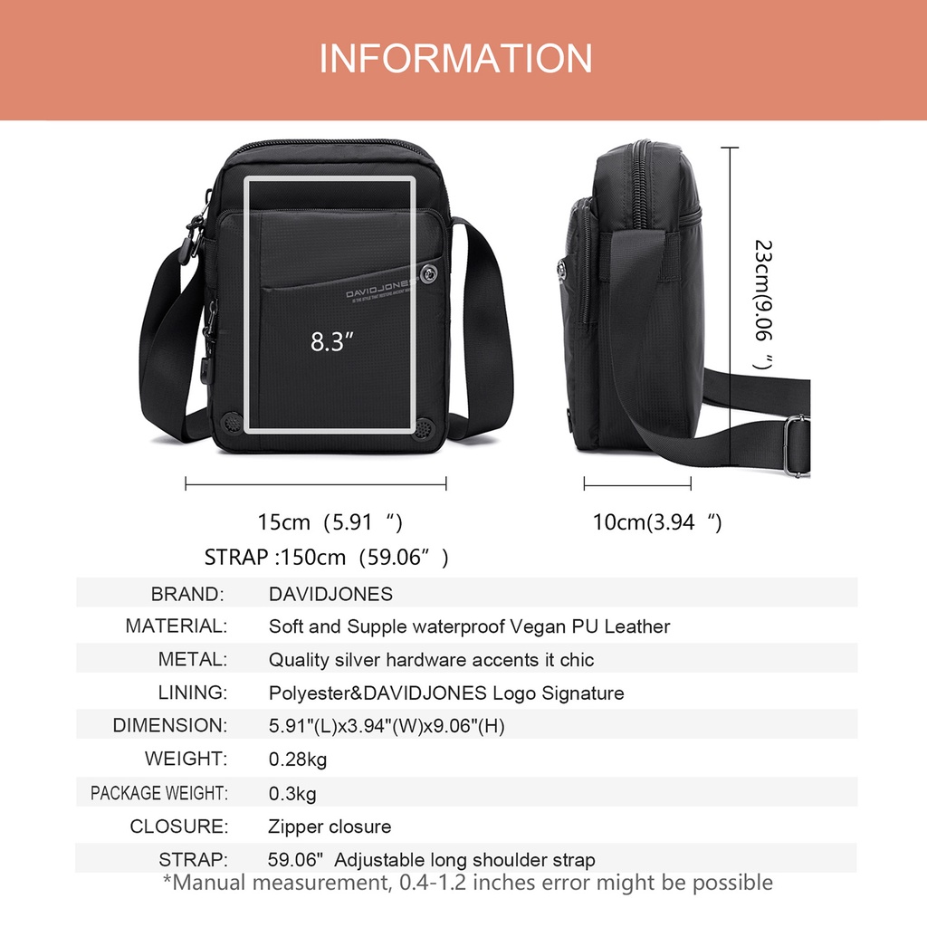David jones Paris Bolsa crossbody Masculina De Poliéster Leve De Alta Qualidade