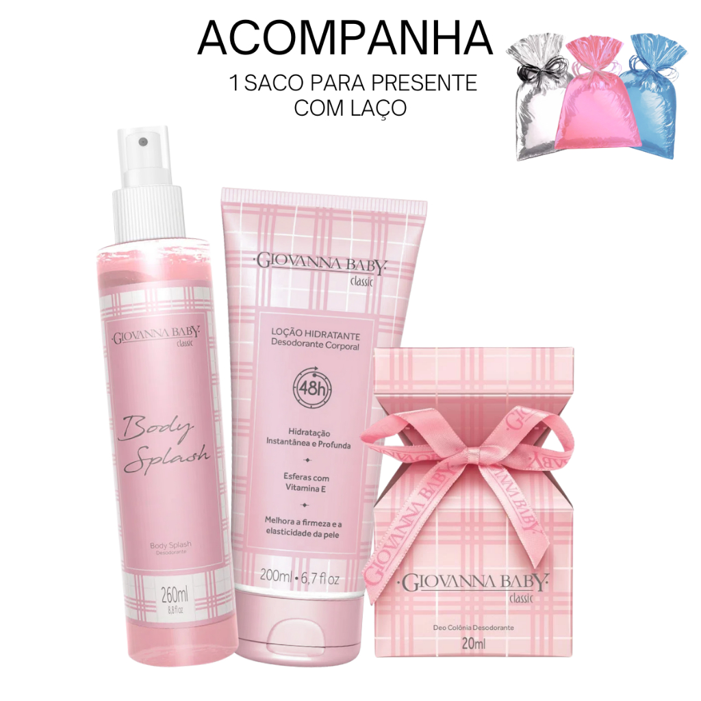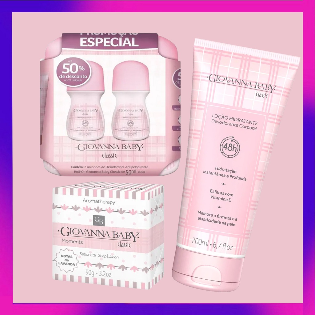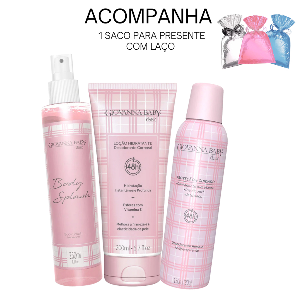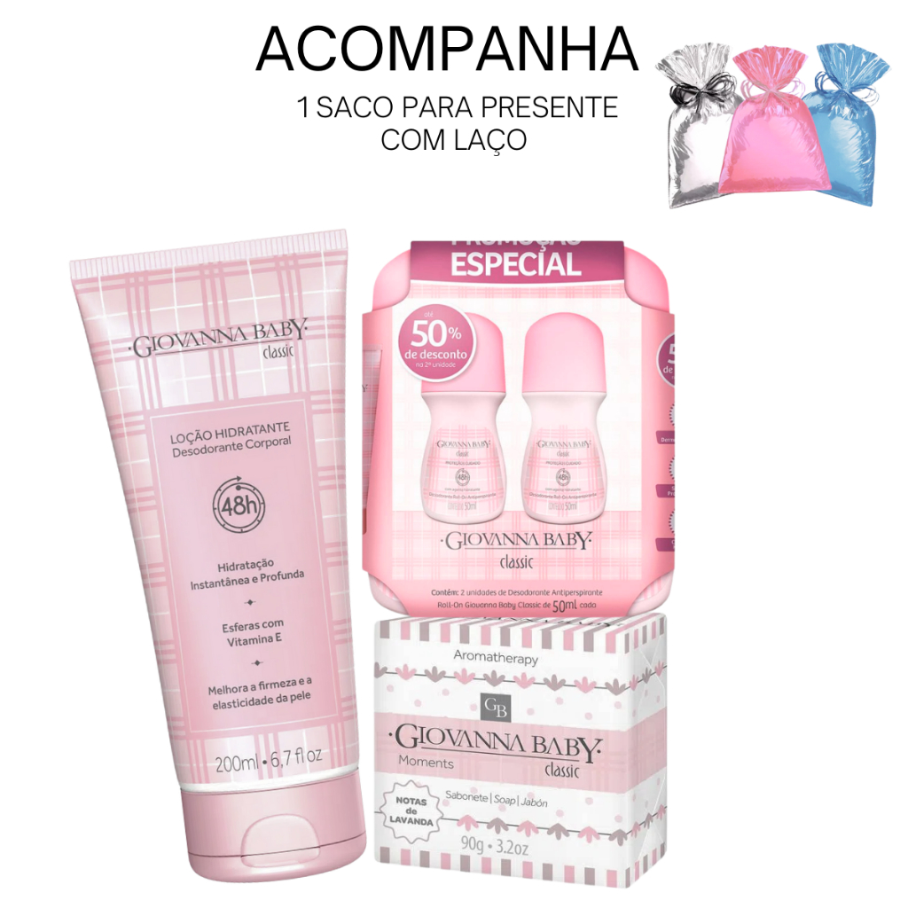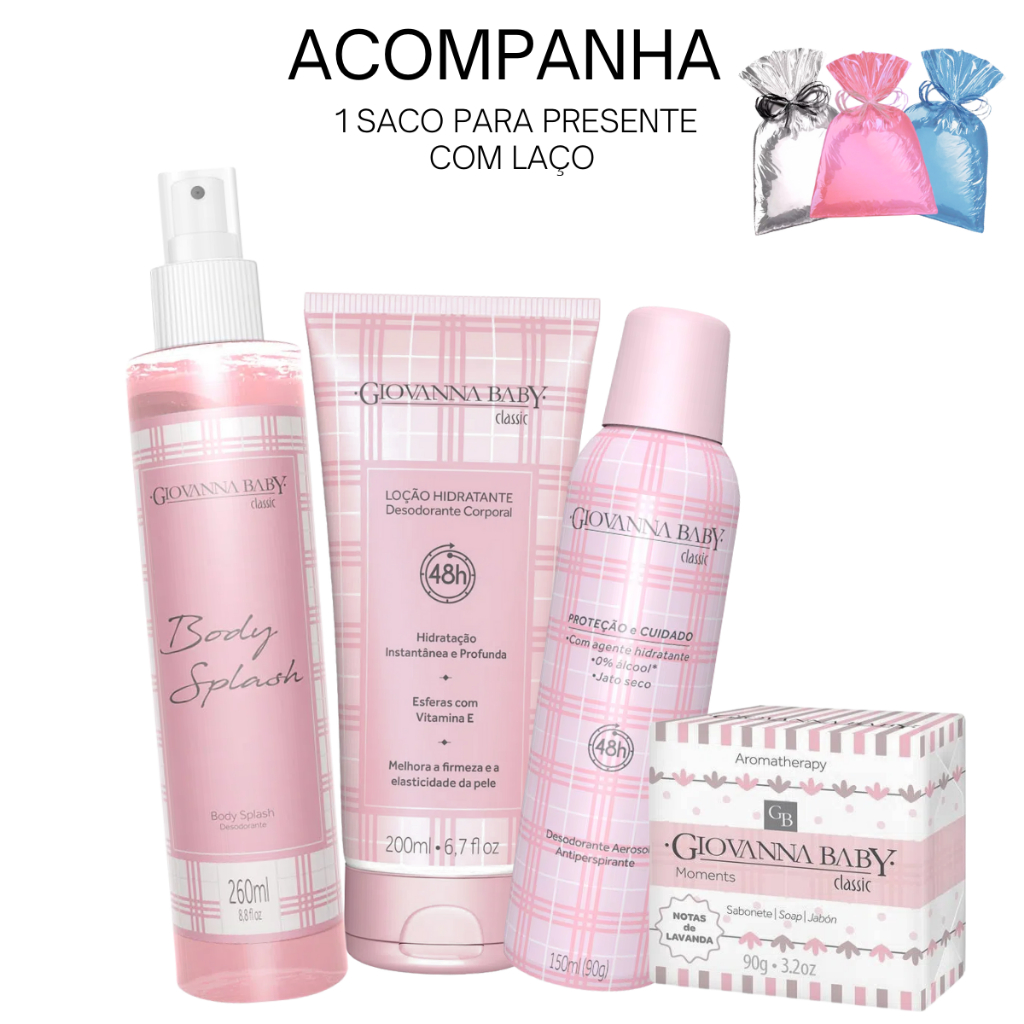 Kit Giovanna Baby Body Splash Classic Loção Hidratante Classic Sabonete Classic Desodorante Roll-On