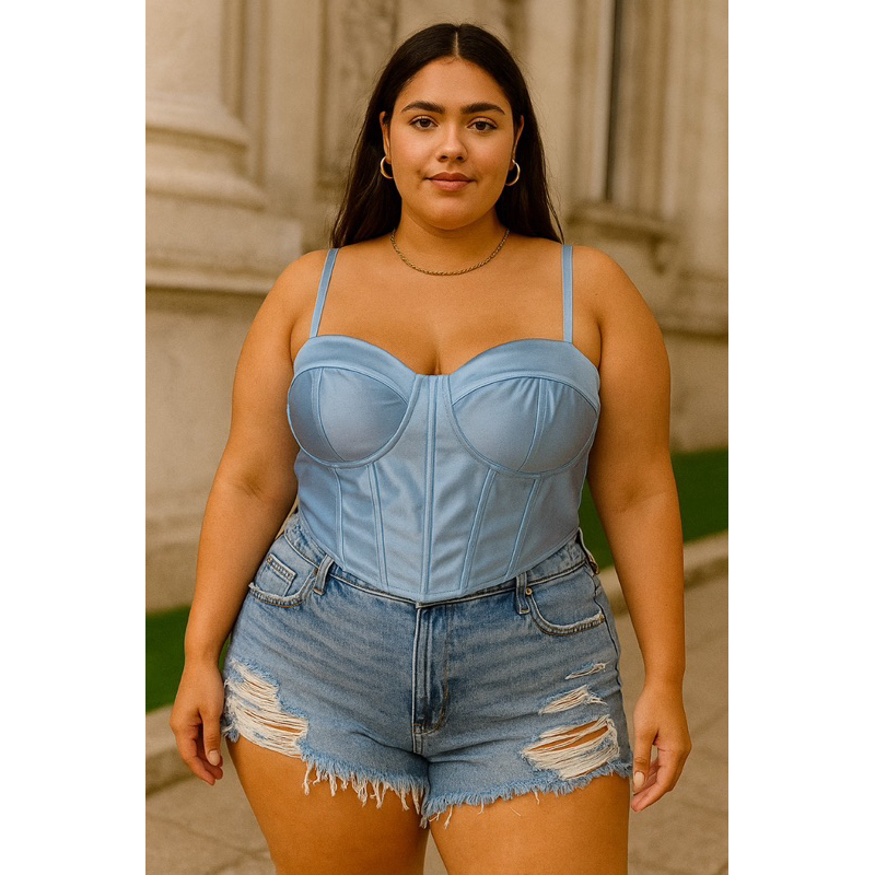 corset PLUS SIZE acetinado com bojo e barbatanas de SUSTENTAÇÃO 48 ao 52