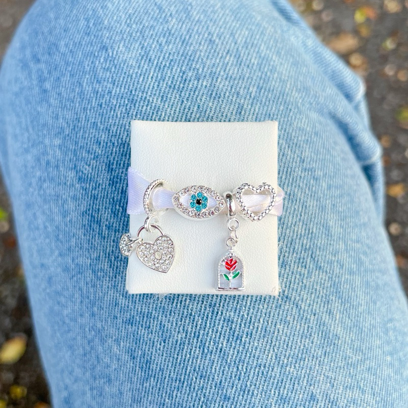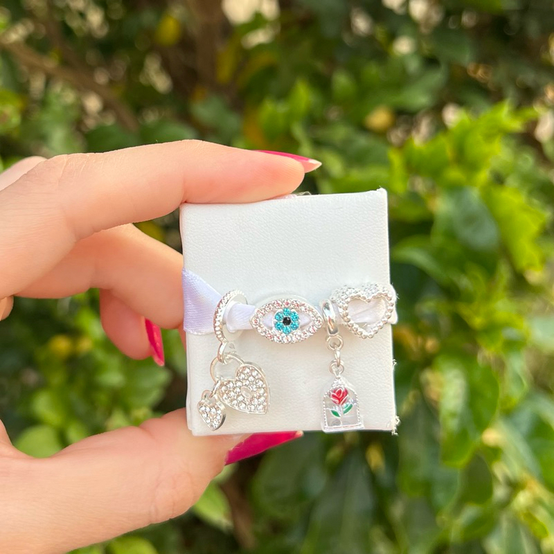 Kit com 4 Berloques Mais Desejados - Banhados a Prata 925 Presente Feminino Coração Delicado
