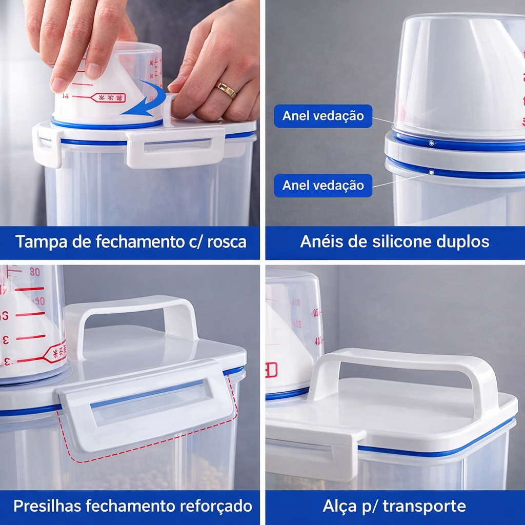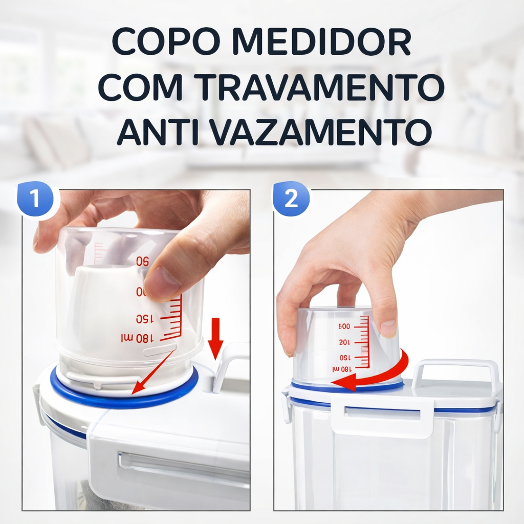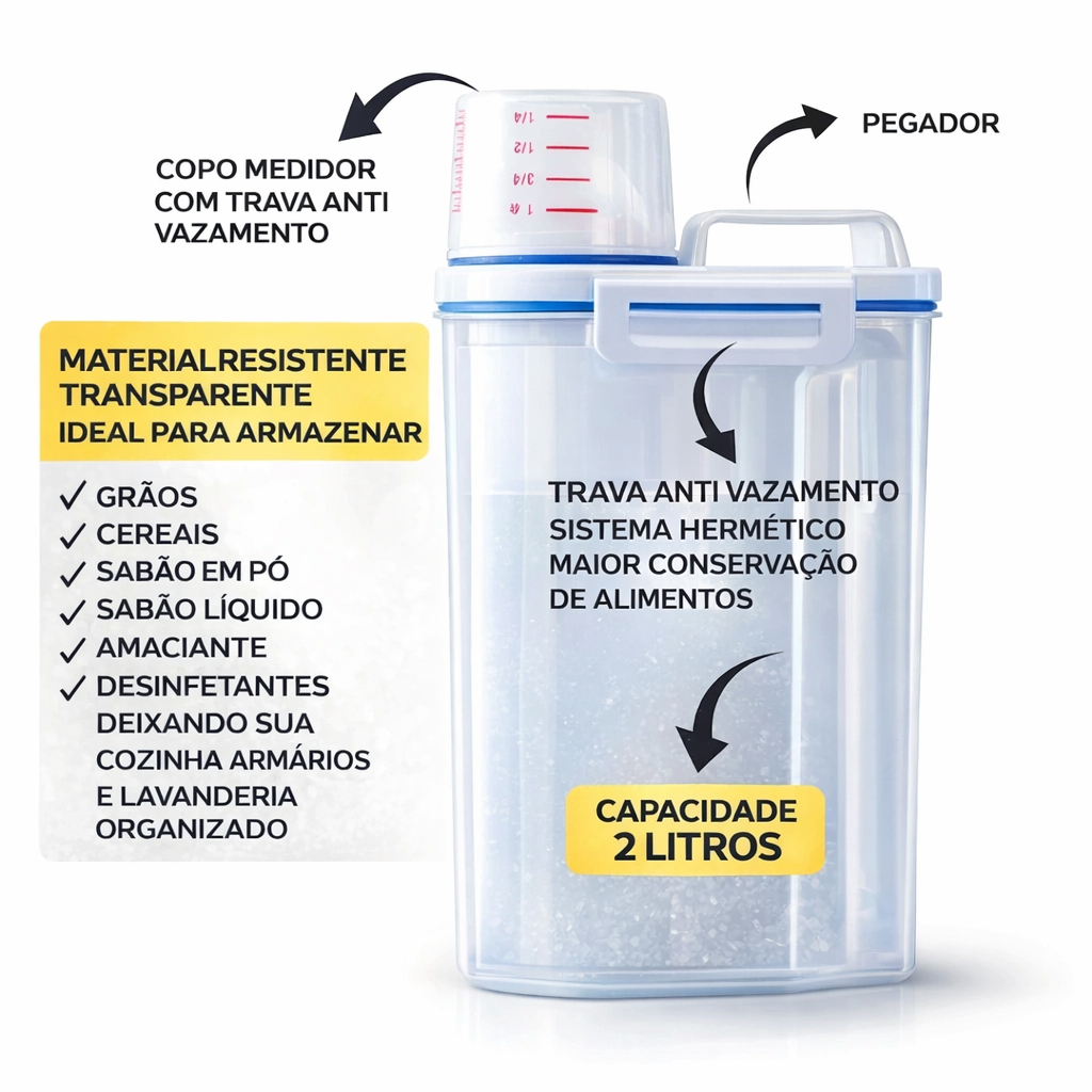 Pote Porta Sabão em pó e Alimentos Hermético com Copo Medidor Bico Dosador e com Trava Resistente