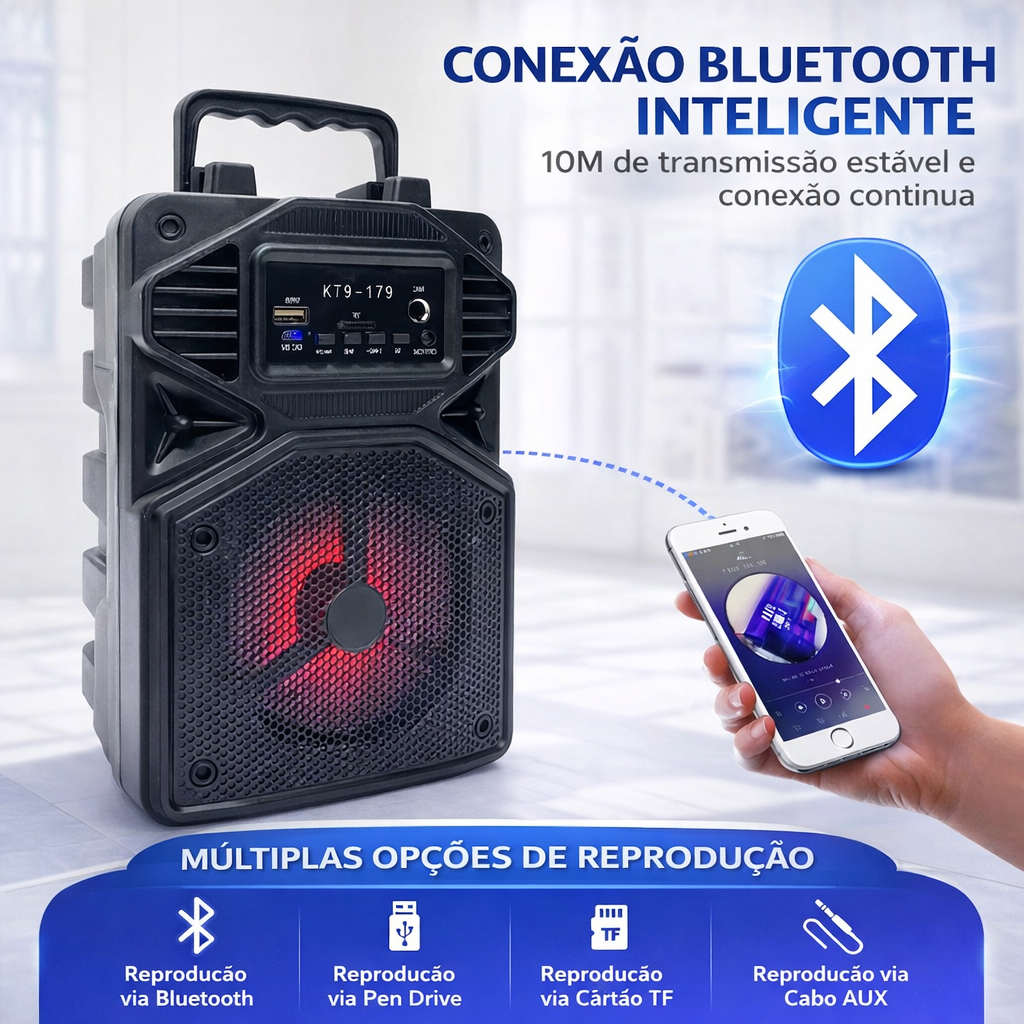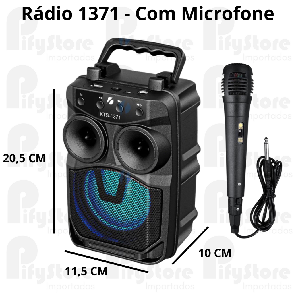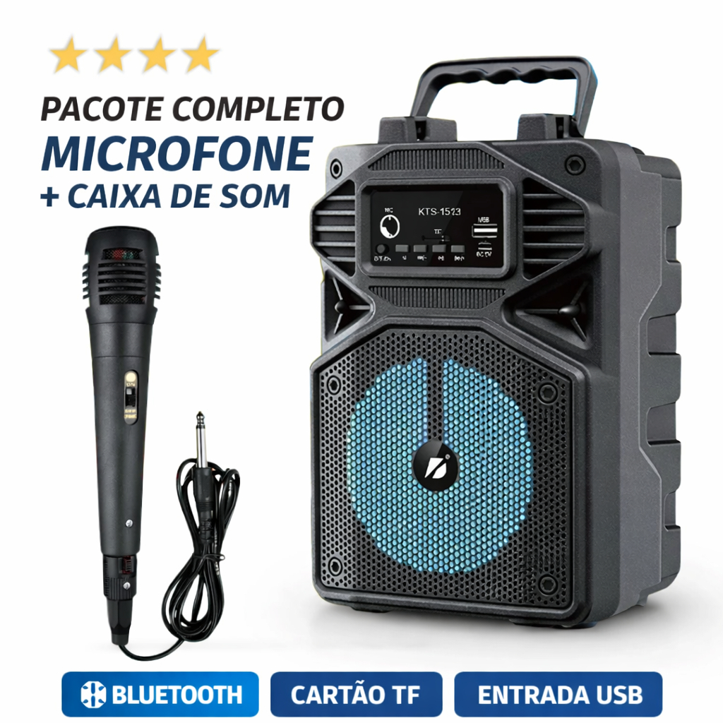 Caixa de Som Karaokê Com Microfone Bateria Bluetooth Rádio FM PenDrive