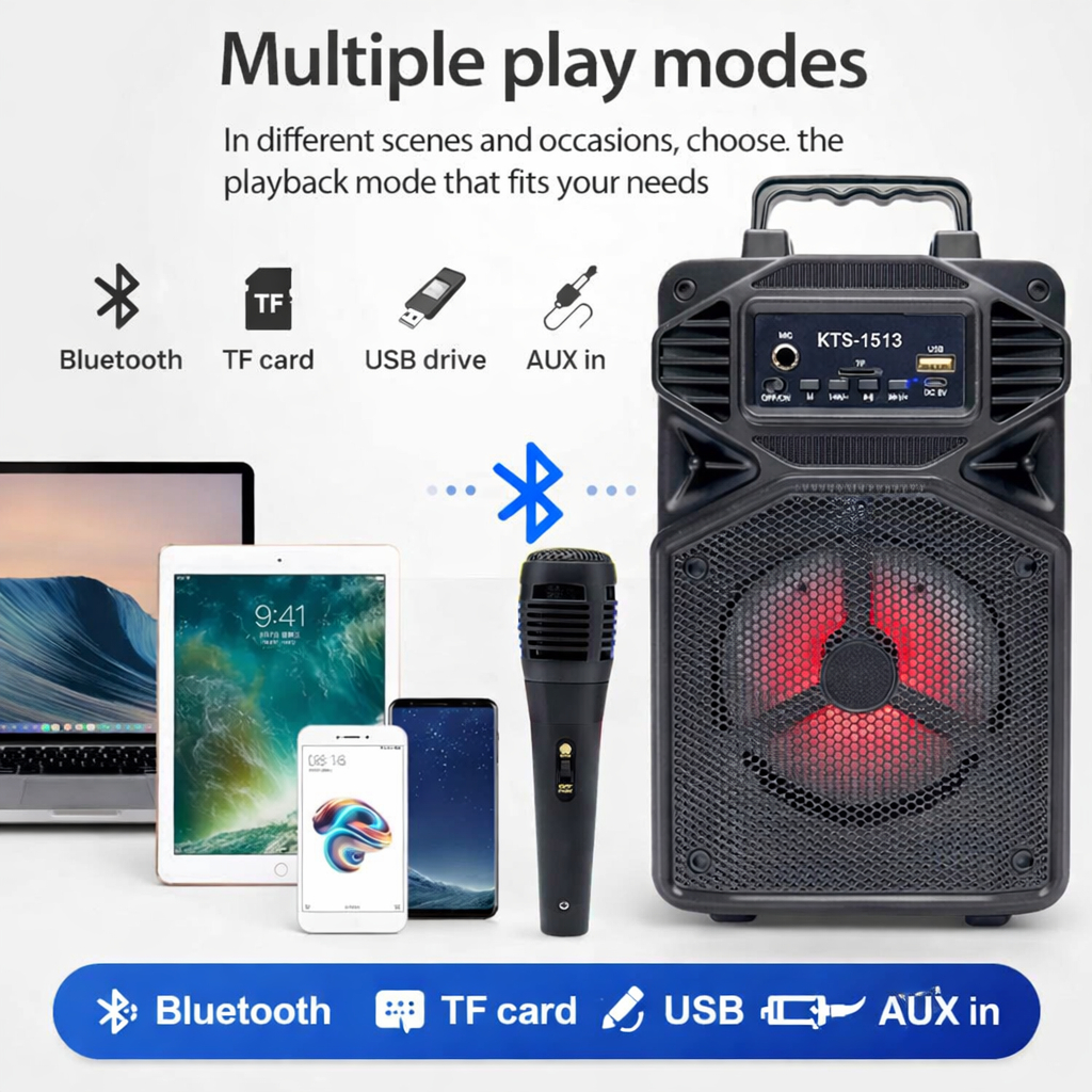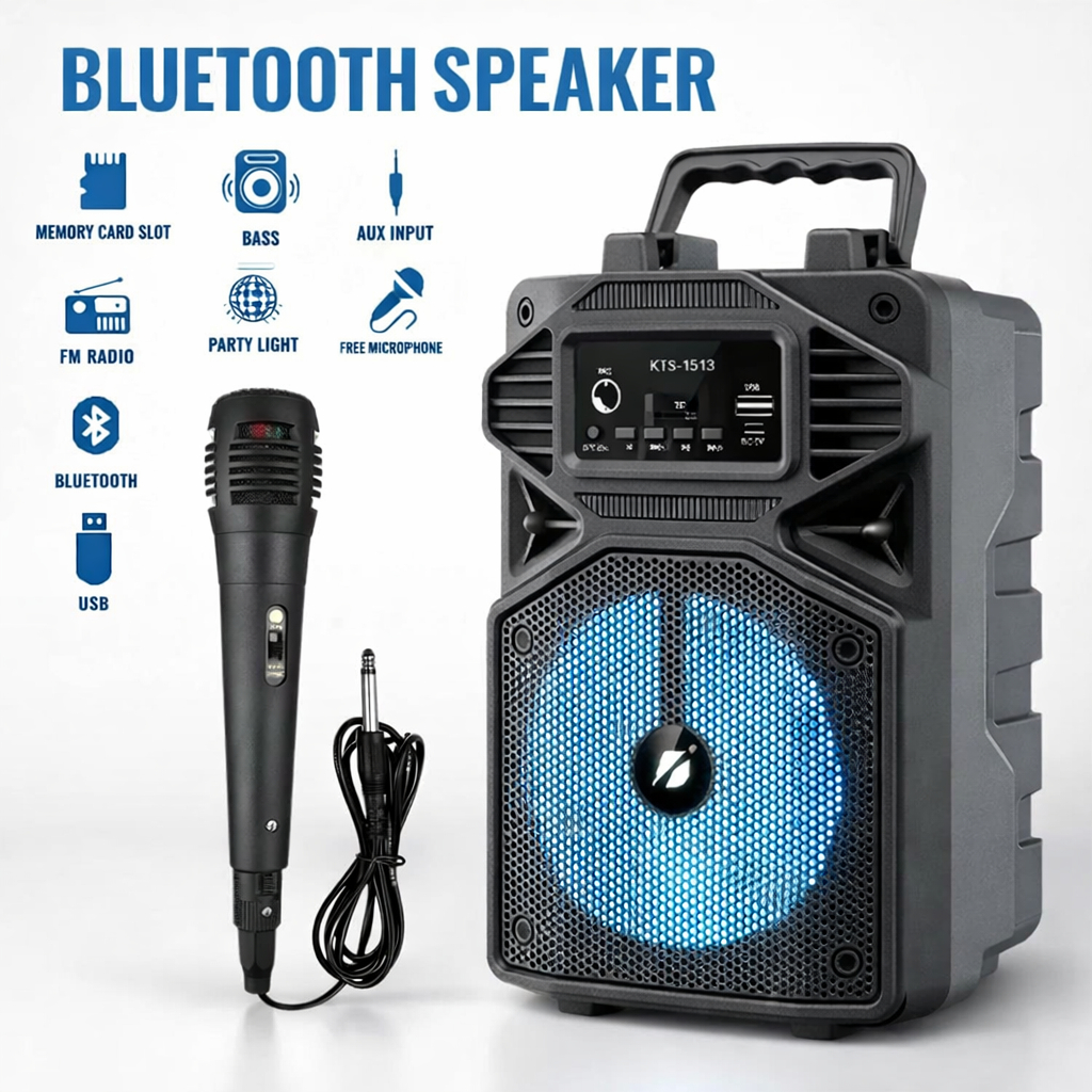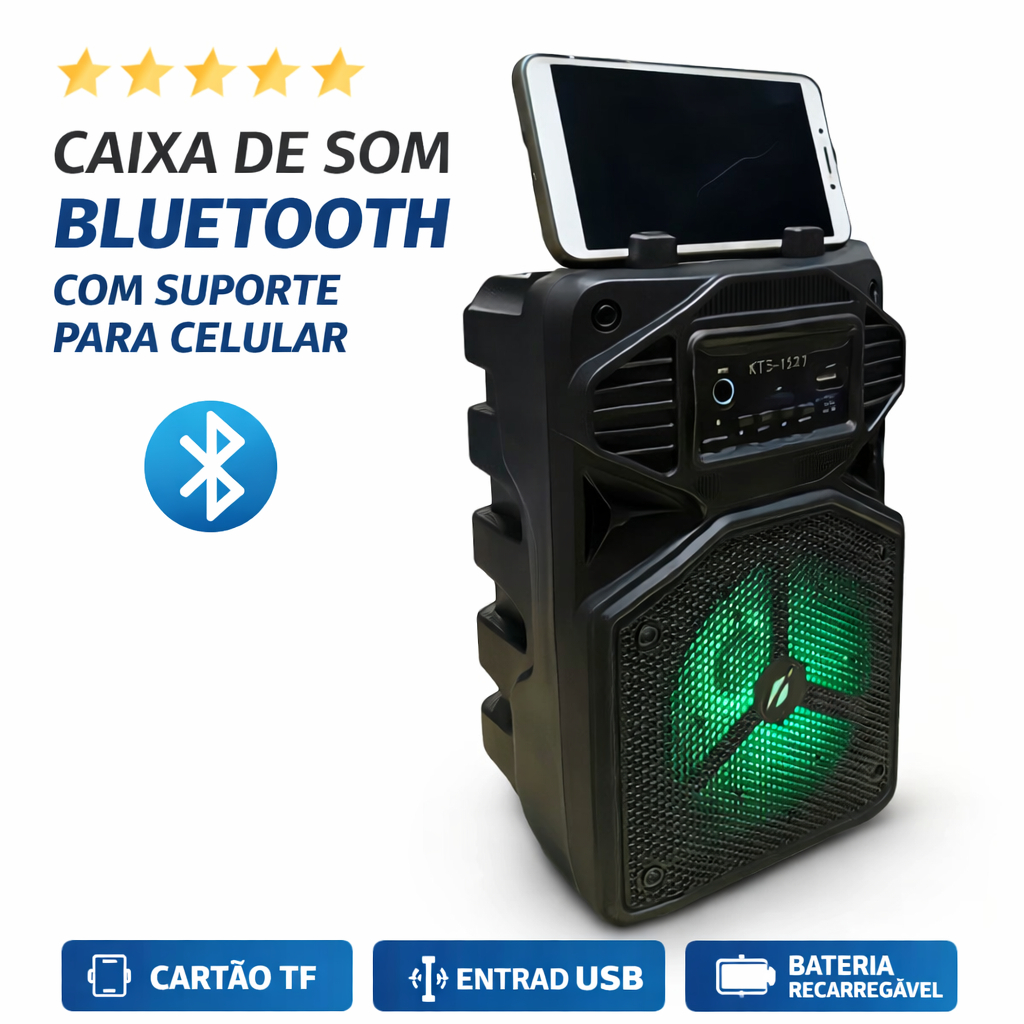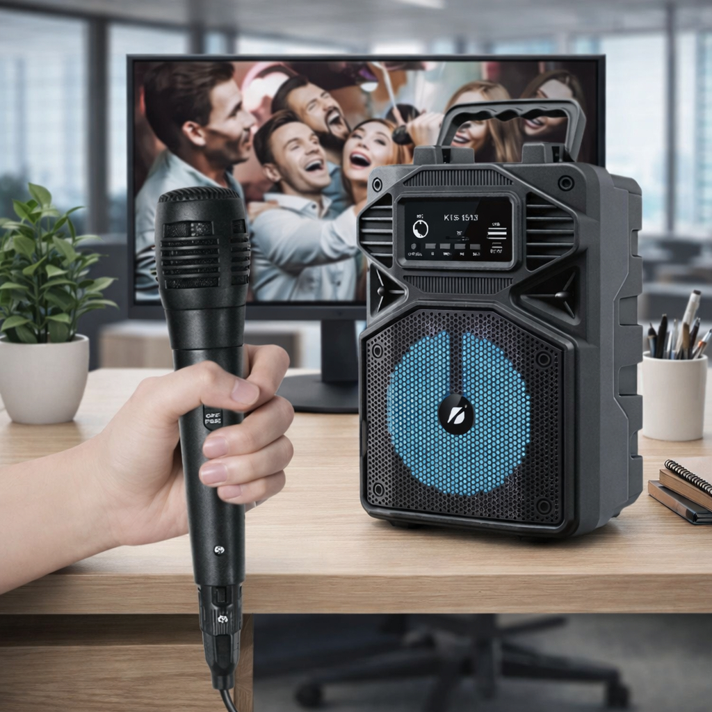 Caixa de Som Karaokê Com Microfone Bateria Bluetooth Rádio FM PenDrive