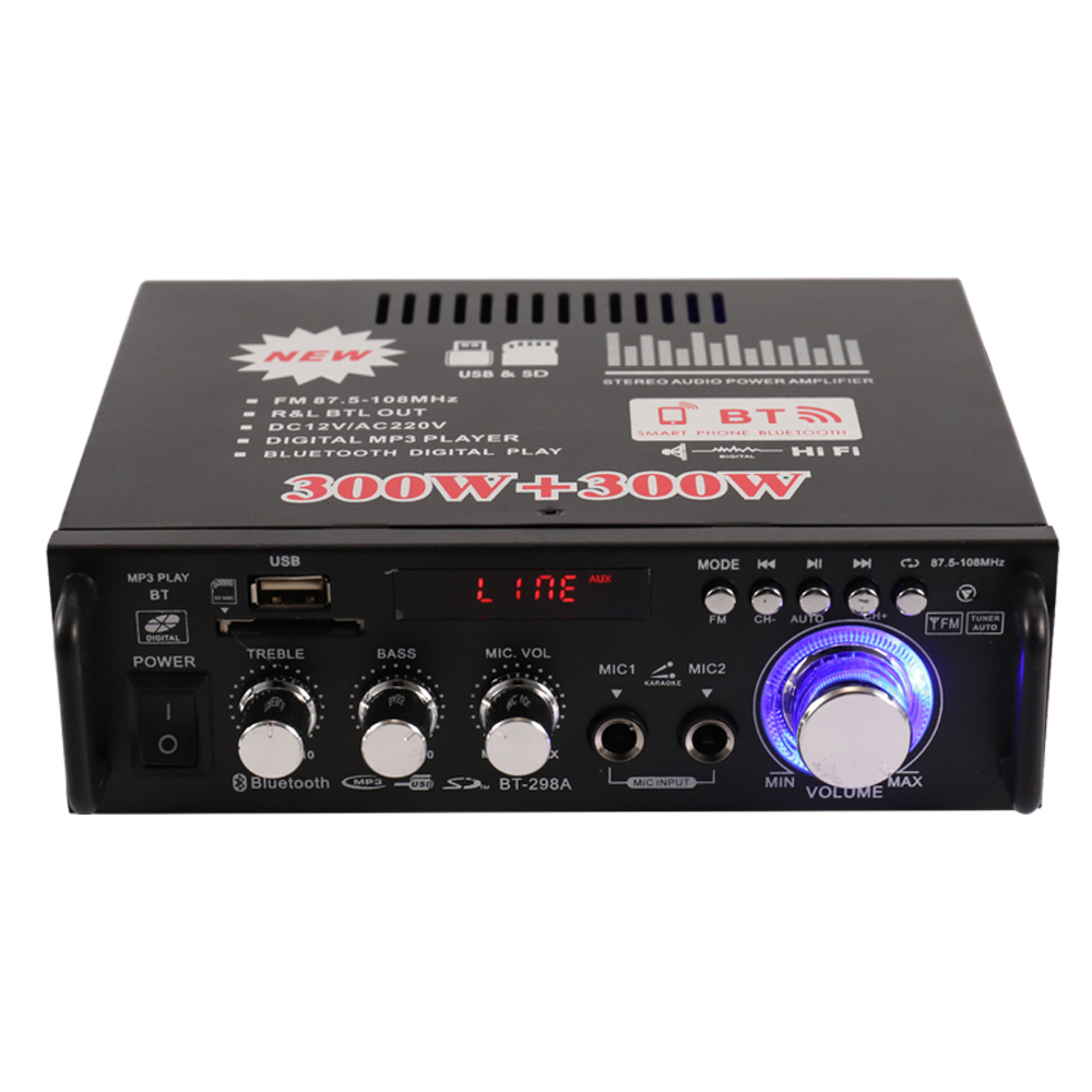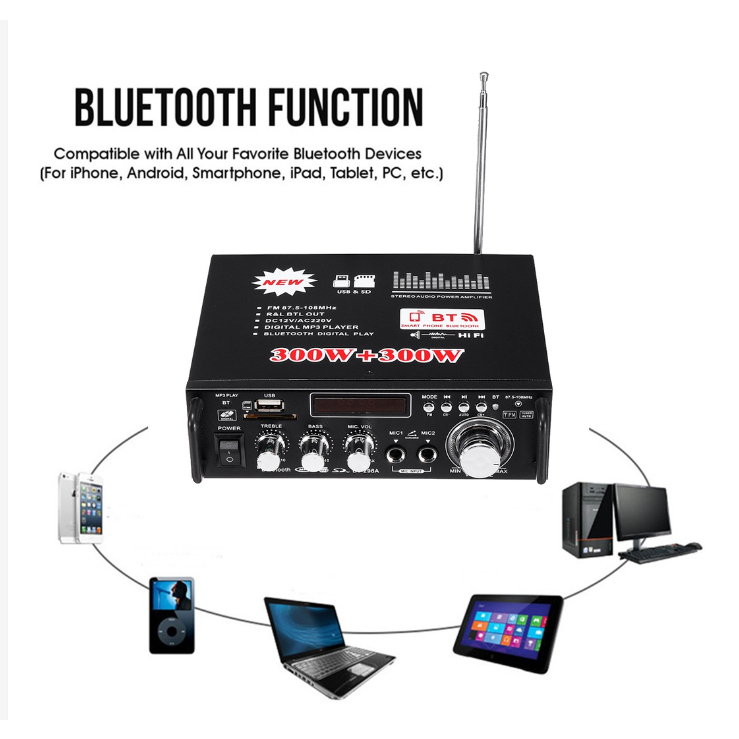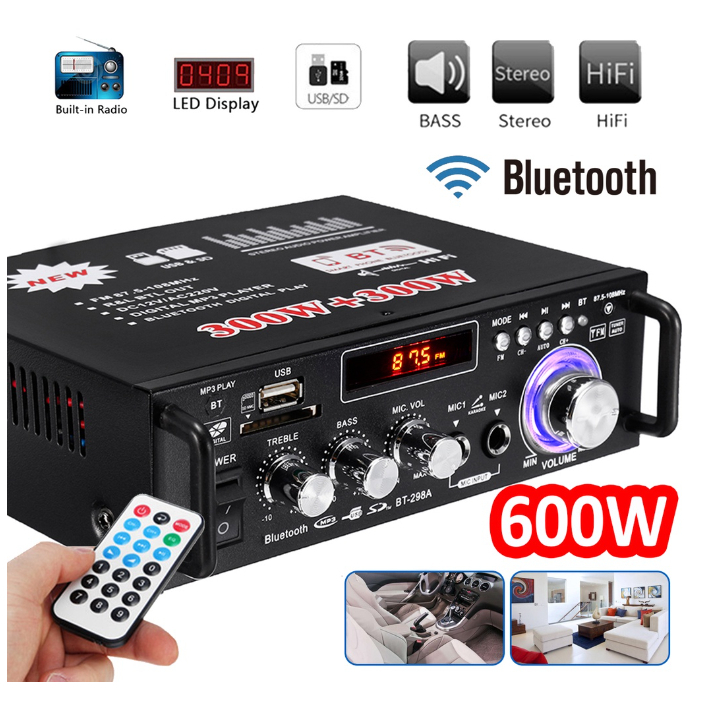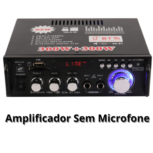 Amplificador Karaokê de potência 600W 220V / 12V Bluetooth FM estéreo MP3 Home Card Mini USB