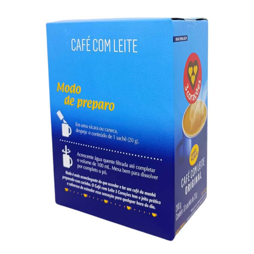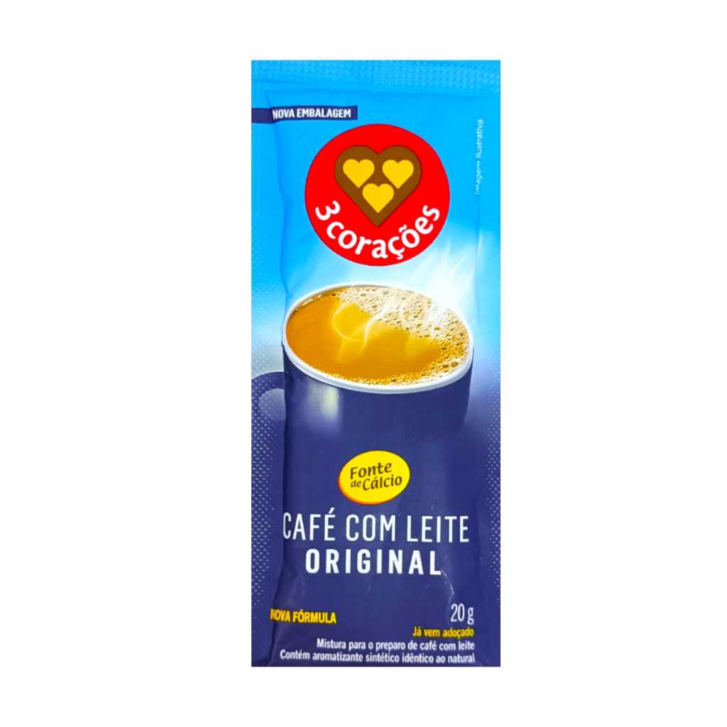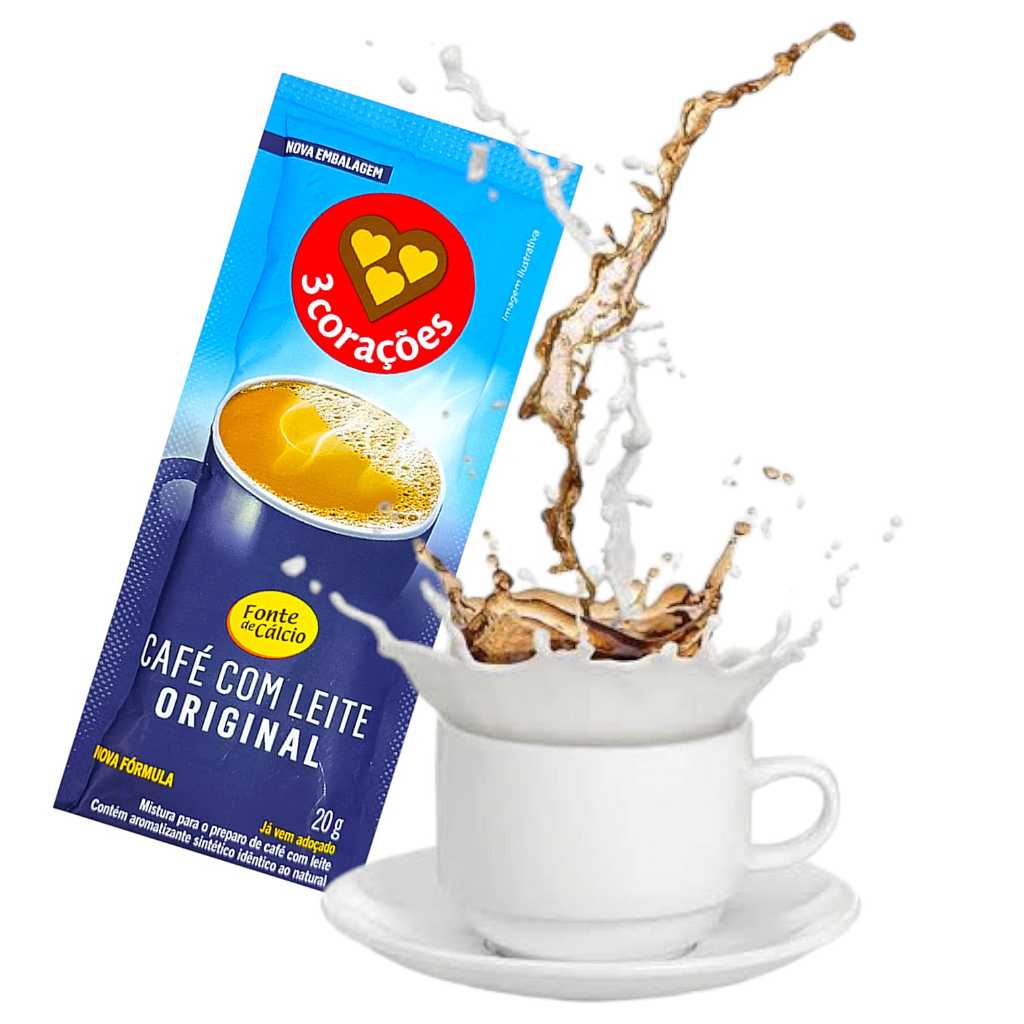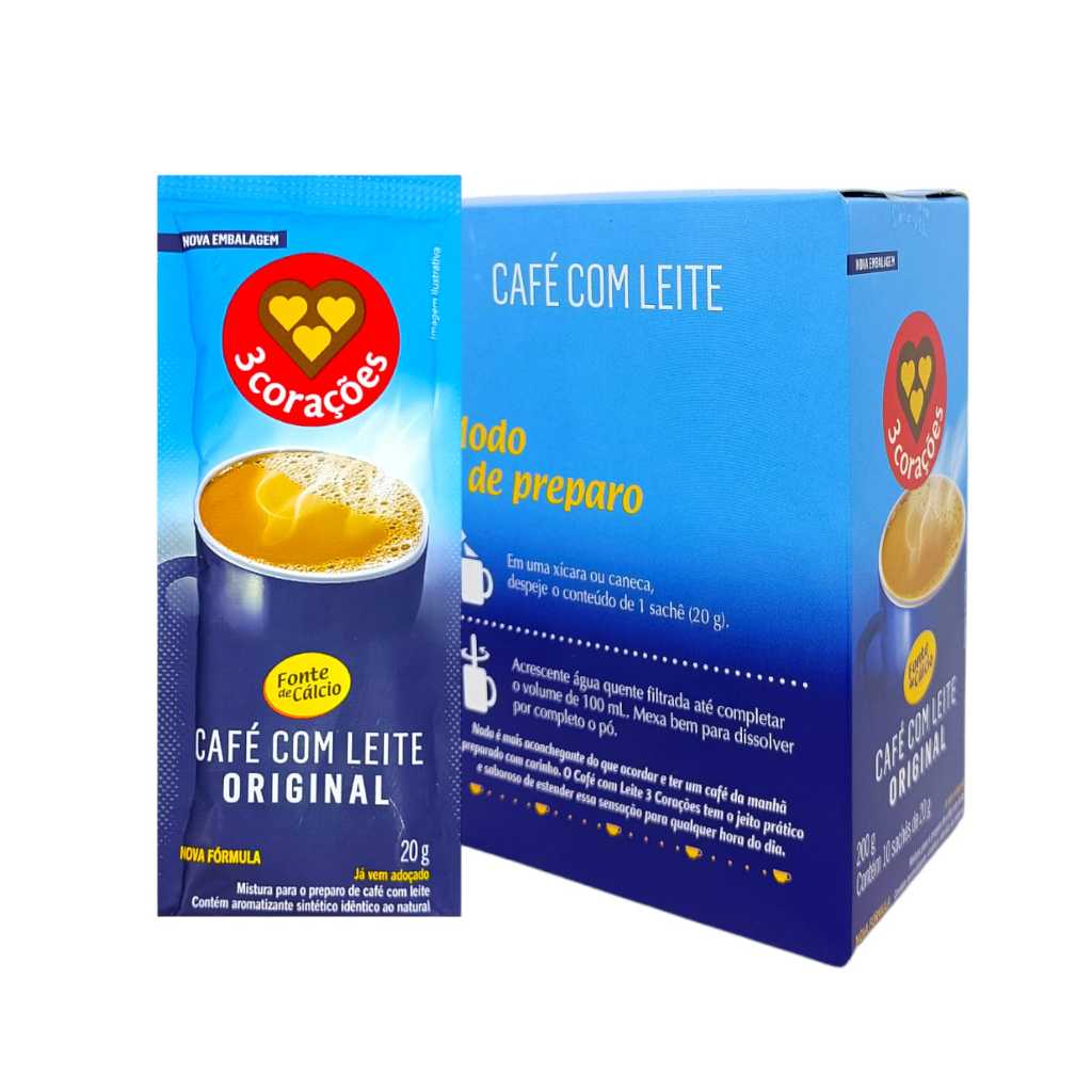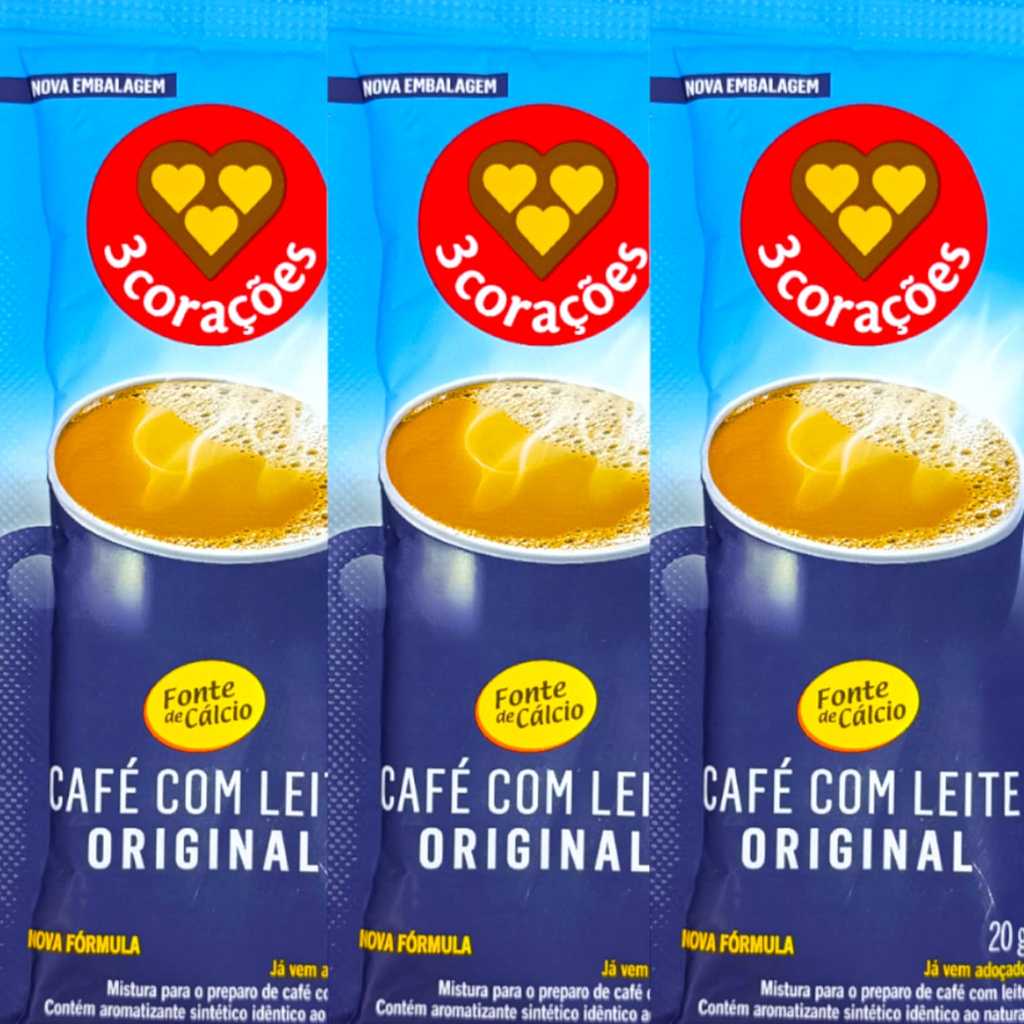 Café Com Leite Solúvel 3 Corações - Caixa 10 Und - 20g