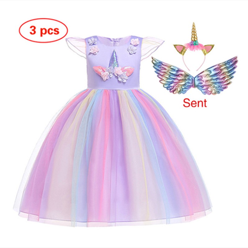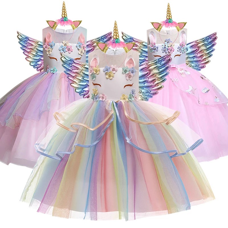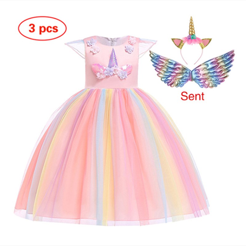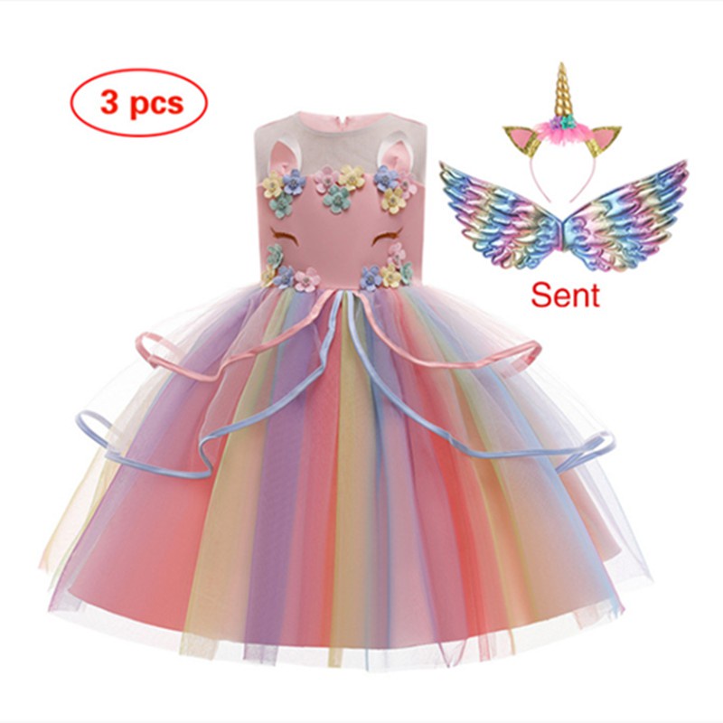 Conjunto de 3 peças de vestido de festa de aniversário de unicórnio para meninas