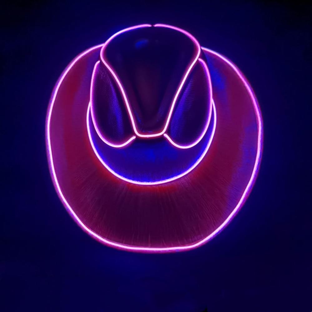 Chapéu De Festa Iluminado Colorido Brilhante Espaço Holográfico Cowboy Cowgirl