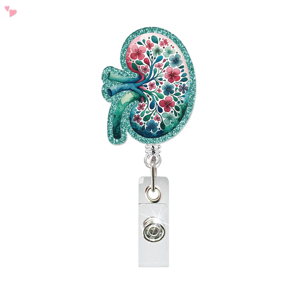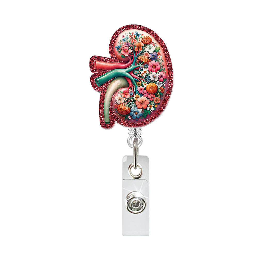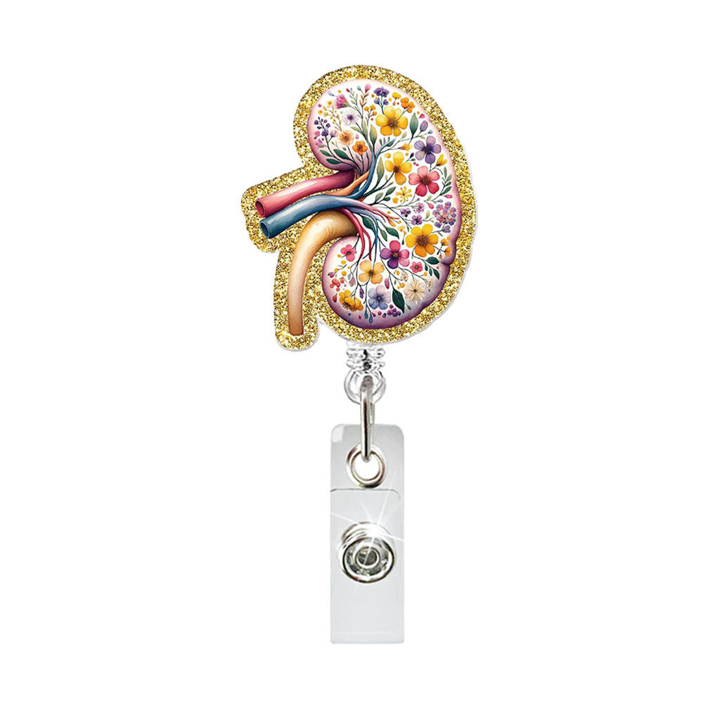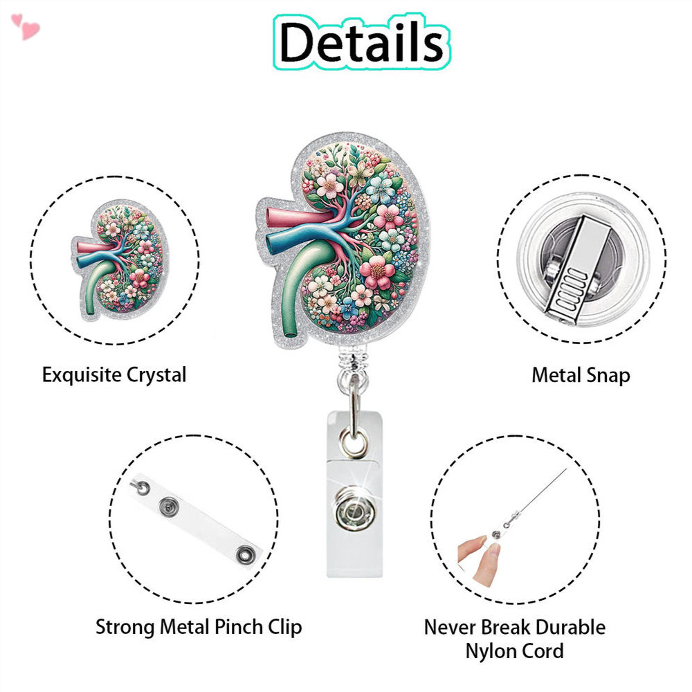 Carretel De Crachá De Rim Floral , Carretéis Urologia Porta Cartão De Identificação Retrátil Glitter Com Clipe De Jacaré